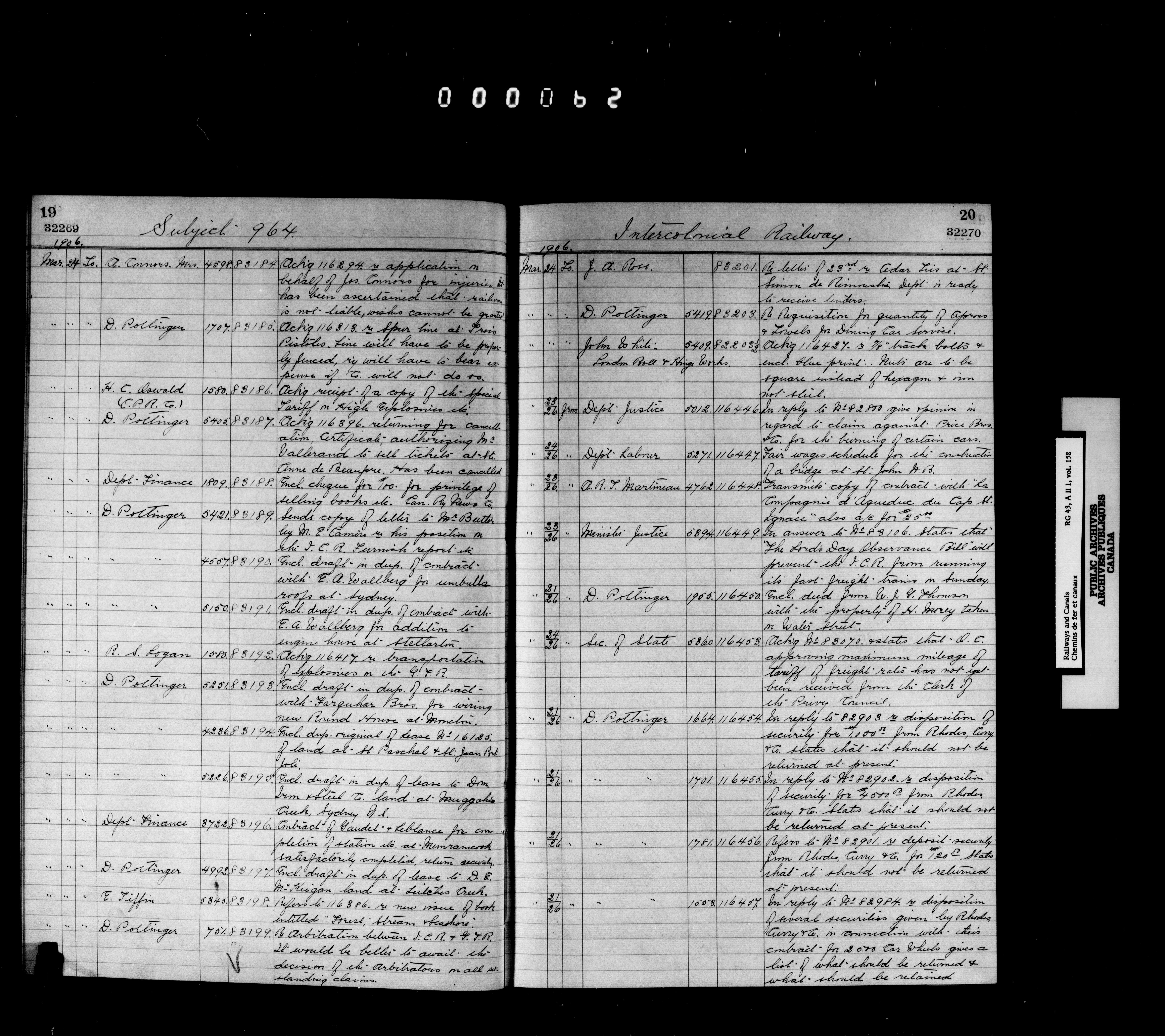 Railway Branch, Registers, Indexes and Journals, 1867-1936 - 7364