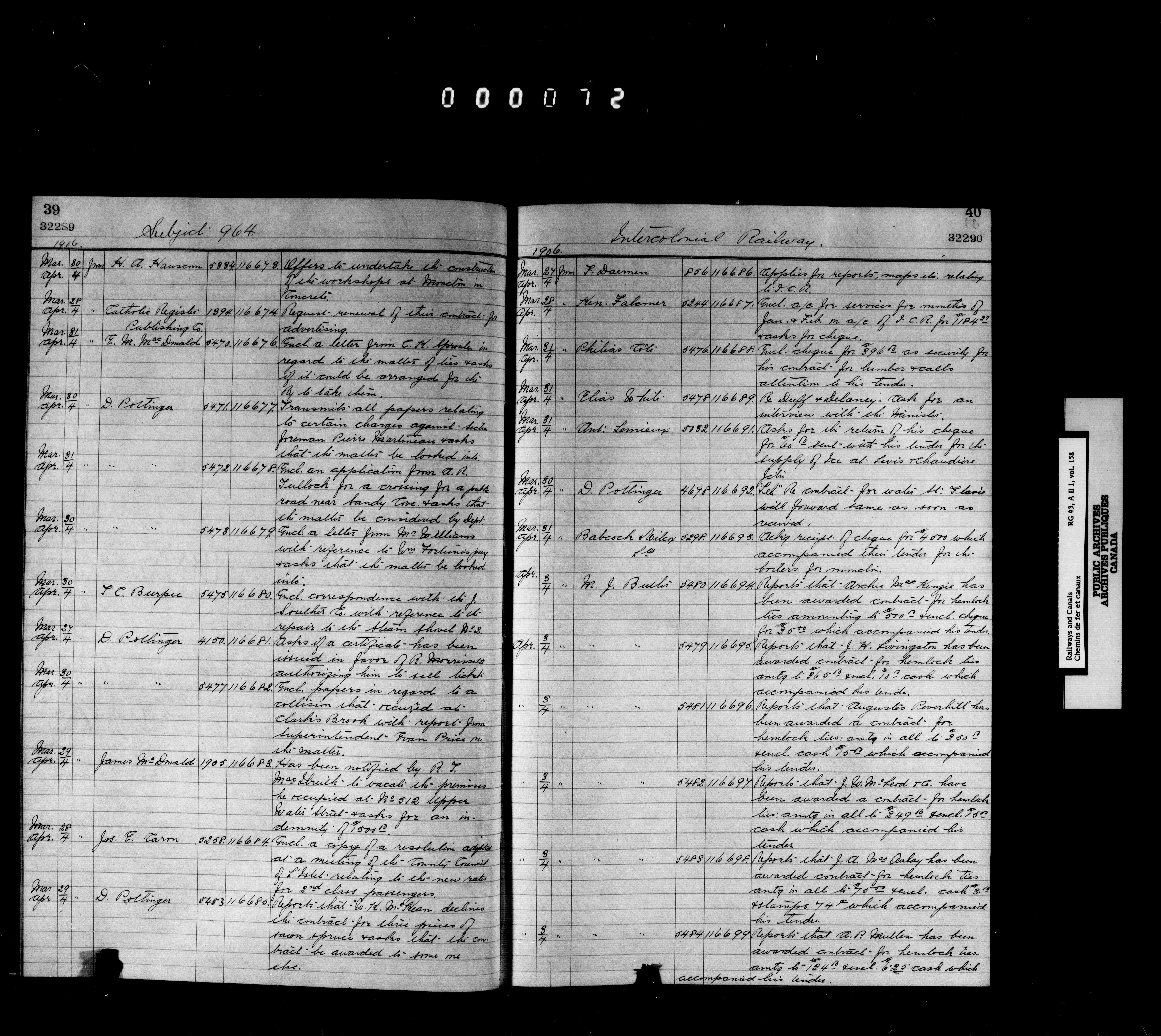 Railway Branch, Registers, Indexes and Journals, 1867-1936 - 7364