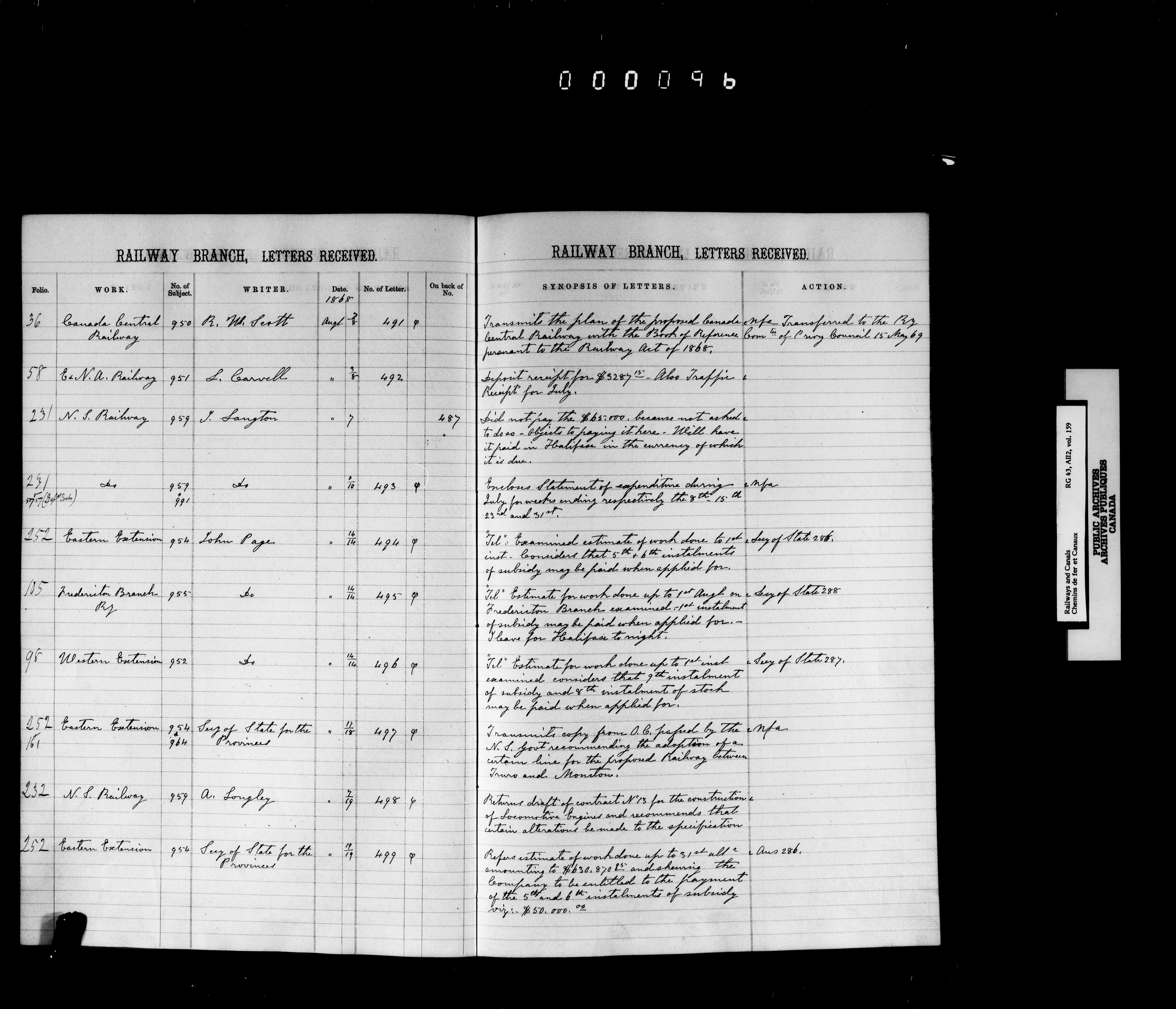 Railway Branch, Registers, Indexes and Journals, 1867-1936 - 7365