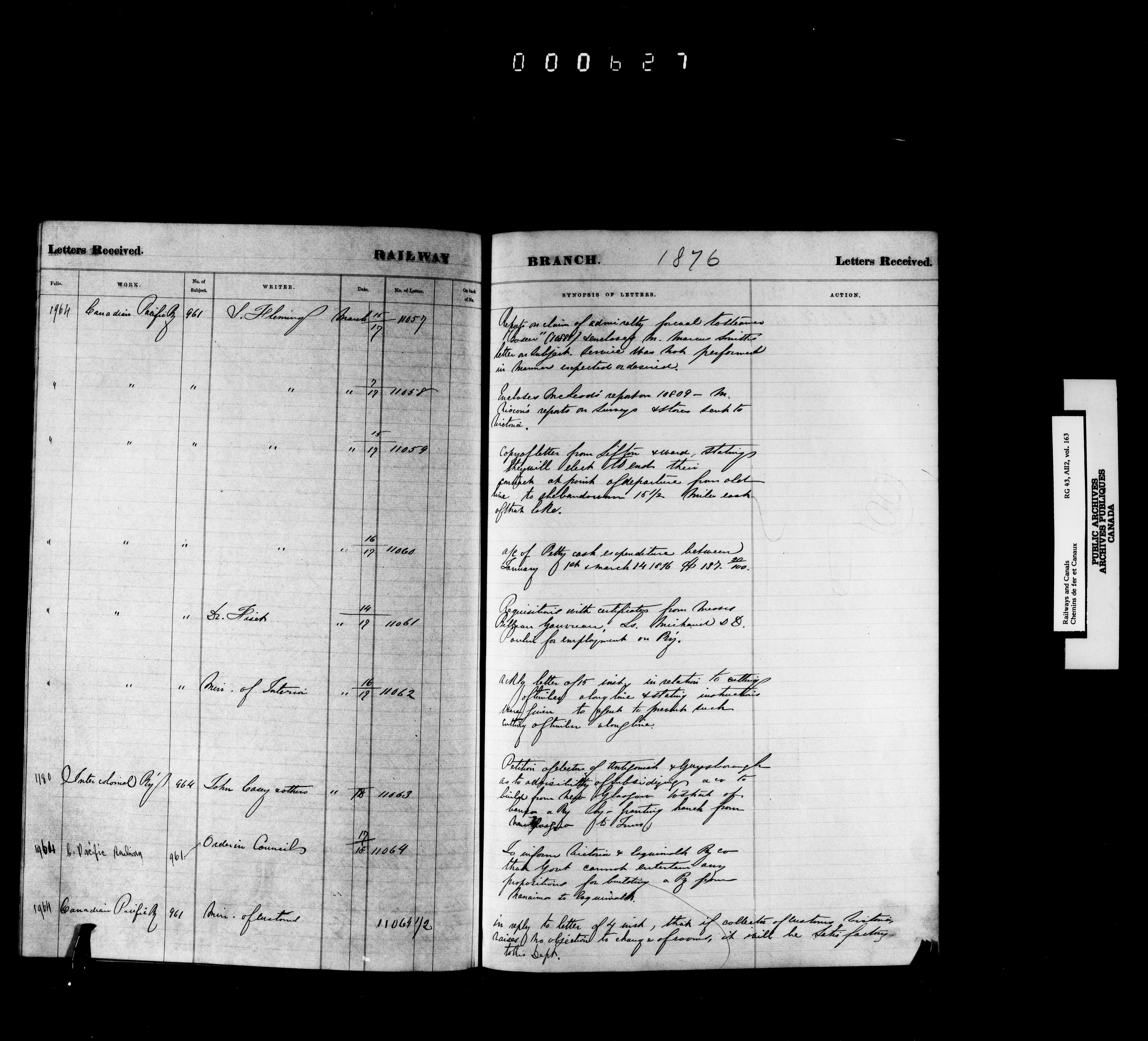 Railway Branch, Registers, Indexes and Journals, 1867-1936 - 7366