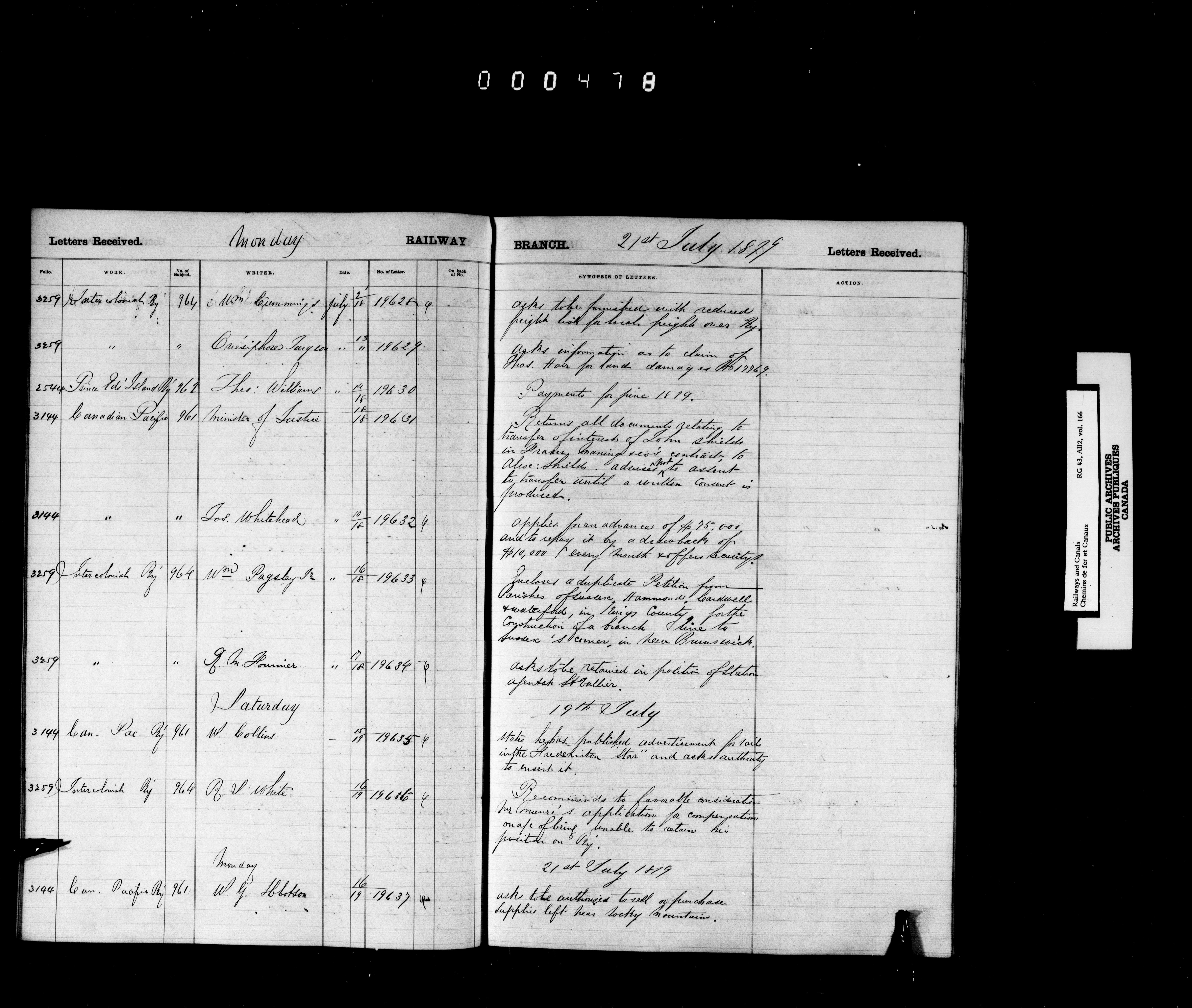 Railway Branch, Registers, Indexes and Journals, 1867-1936 - 7368
