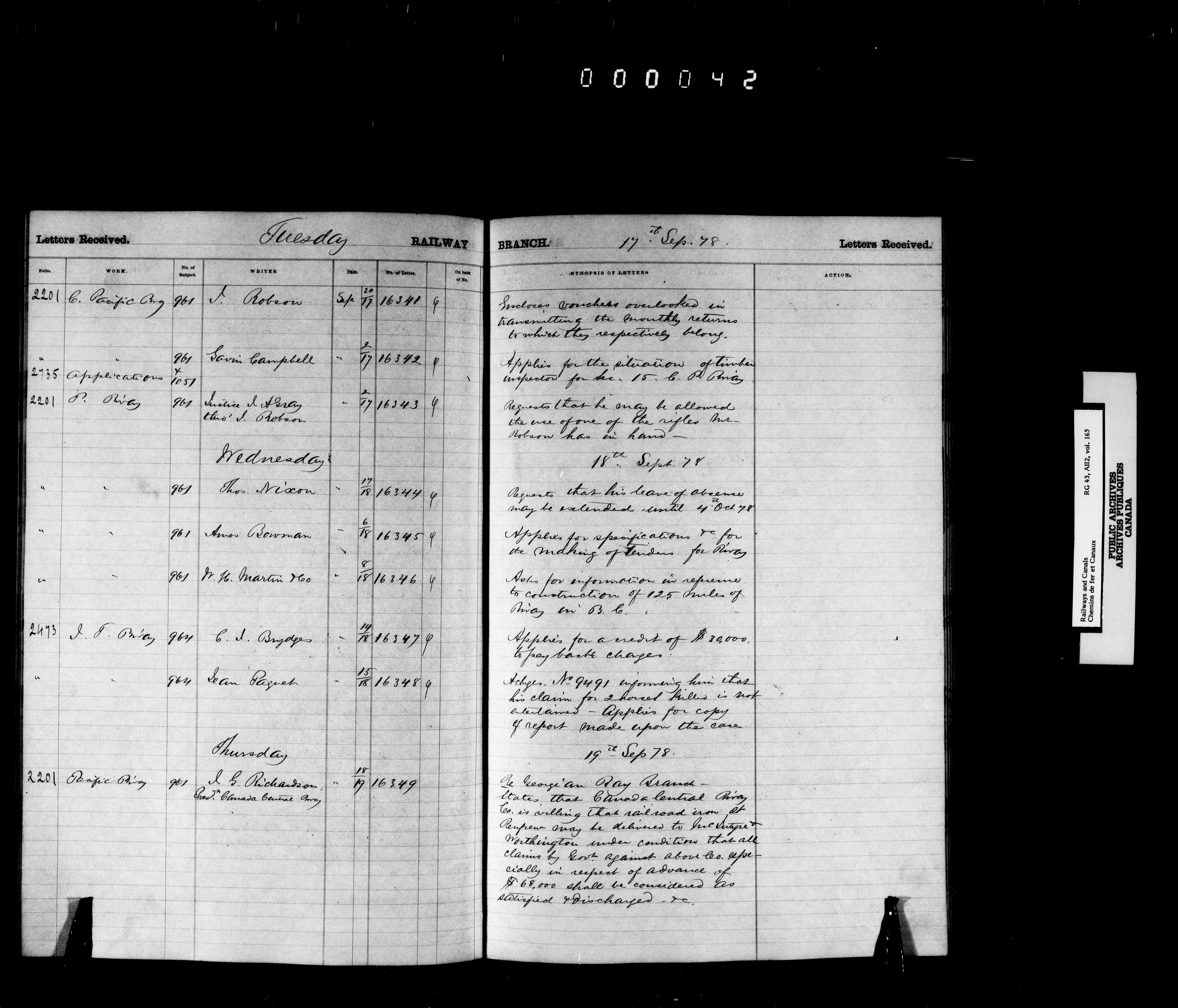 Railway Branch, Registers, Indexes and Journals, 1867-1936 - 7368