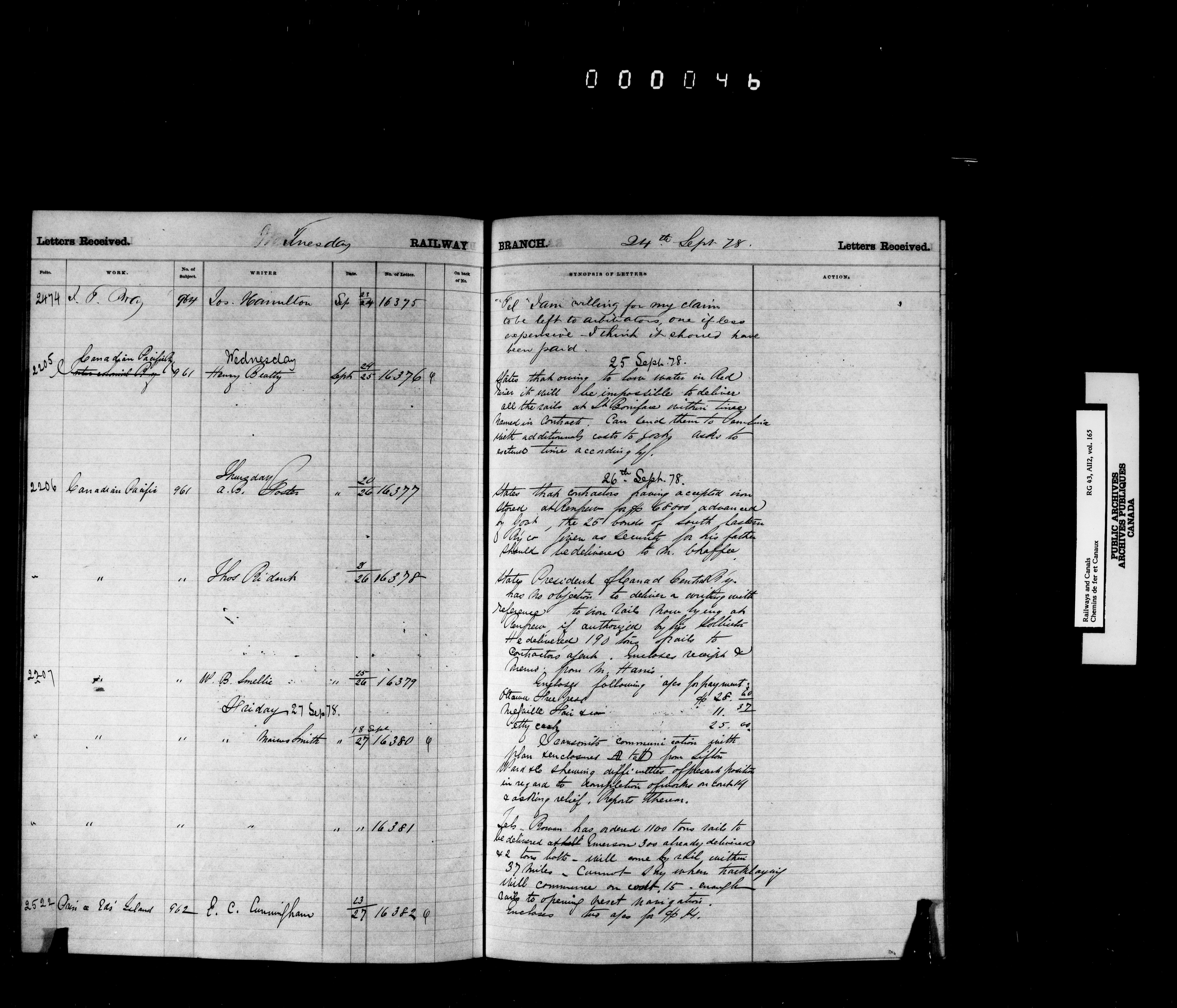 Railway Branch, Registers, Indexes and Journals, 1867-1936 - 7368