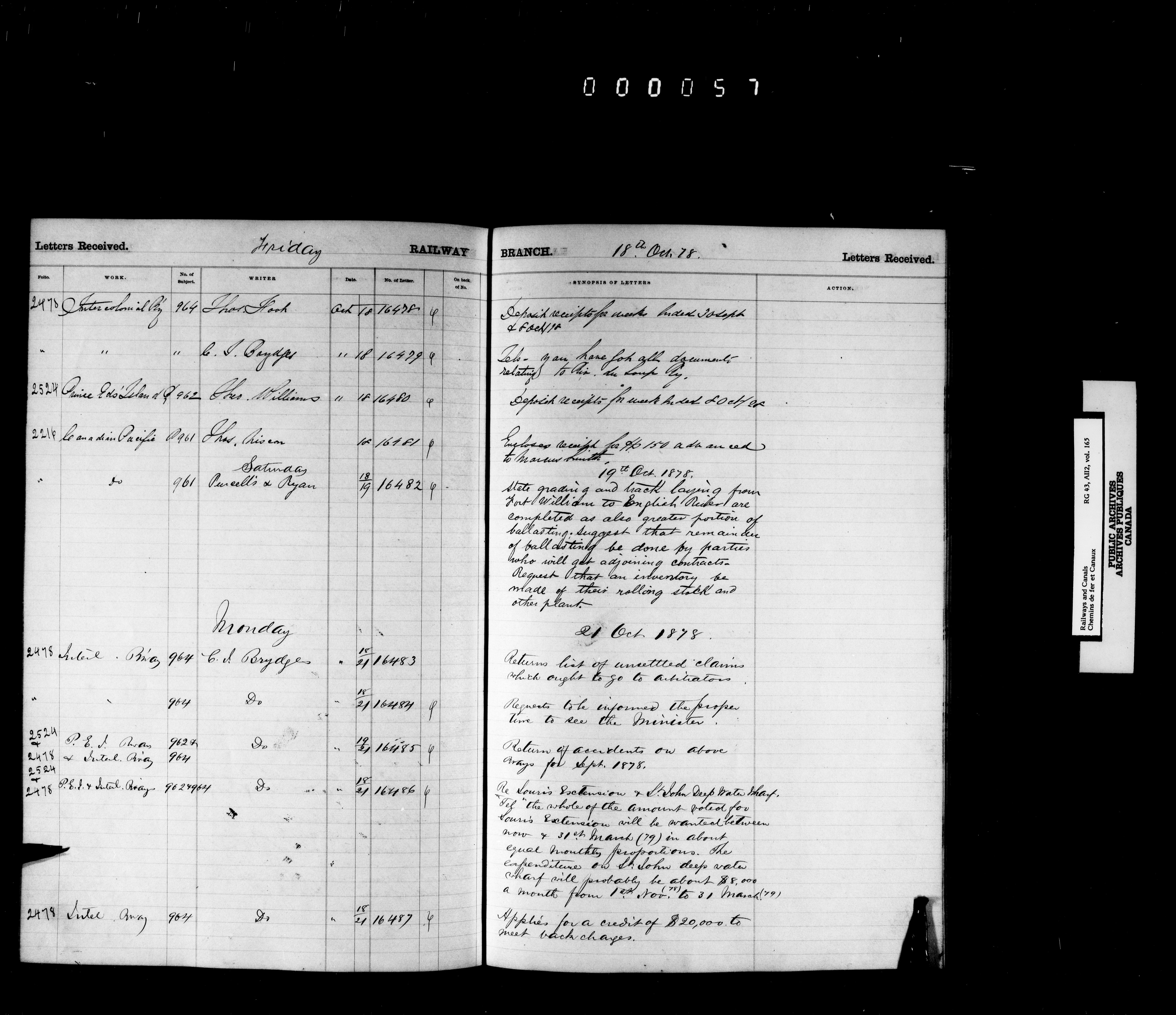 Railway Branch, Registers, Indexes and Journals, 1867-1936 - 7368