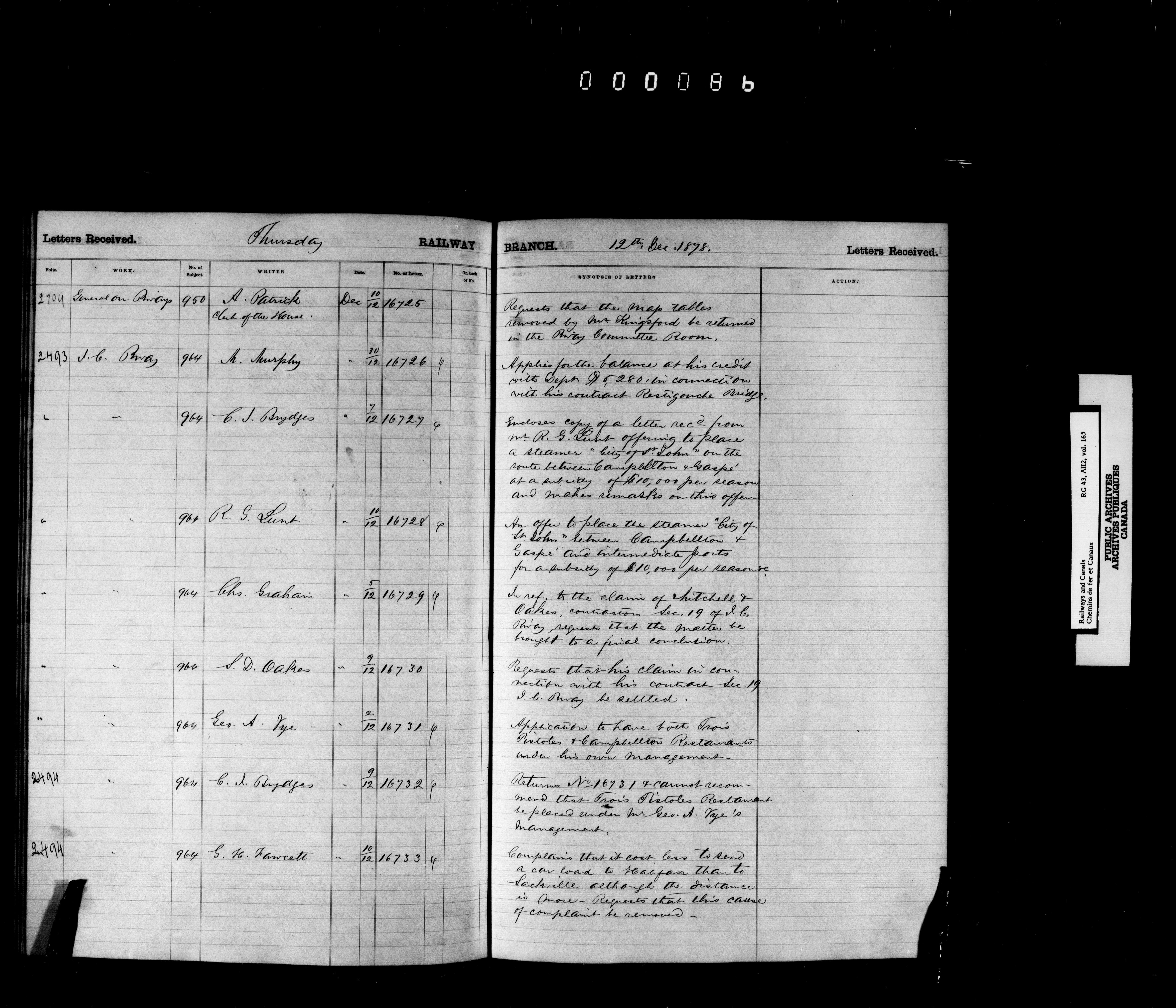Railway Branch, Registers, Indexes and Journals, 1867-1936 - 7368