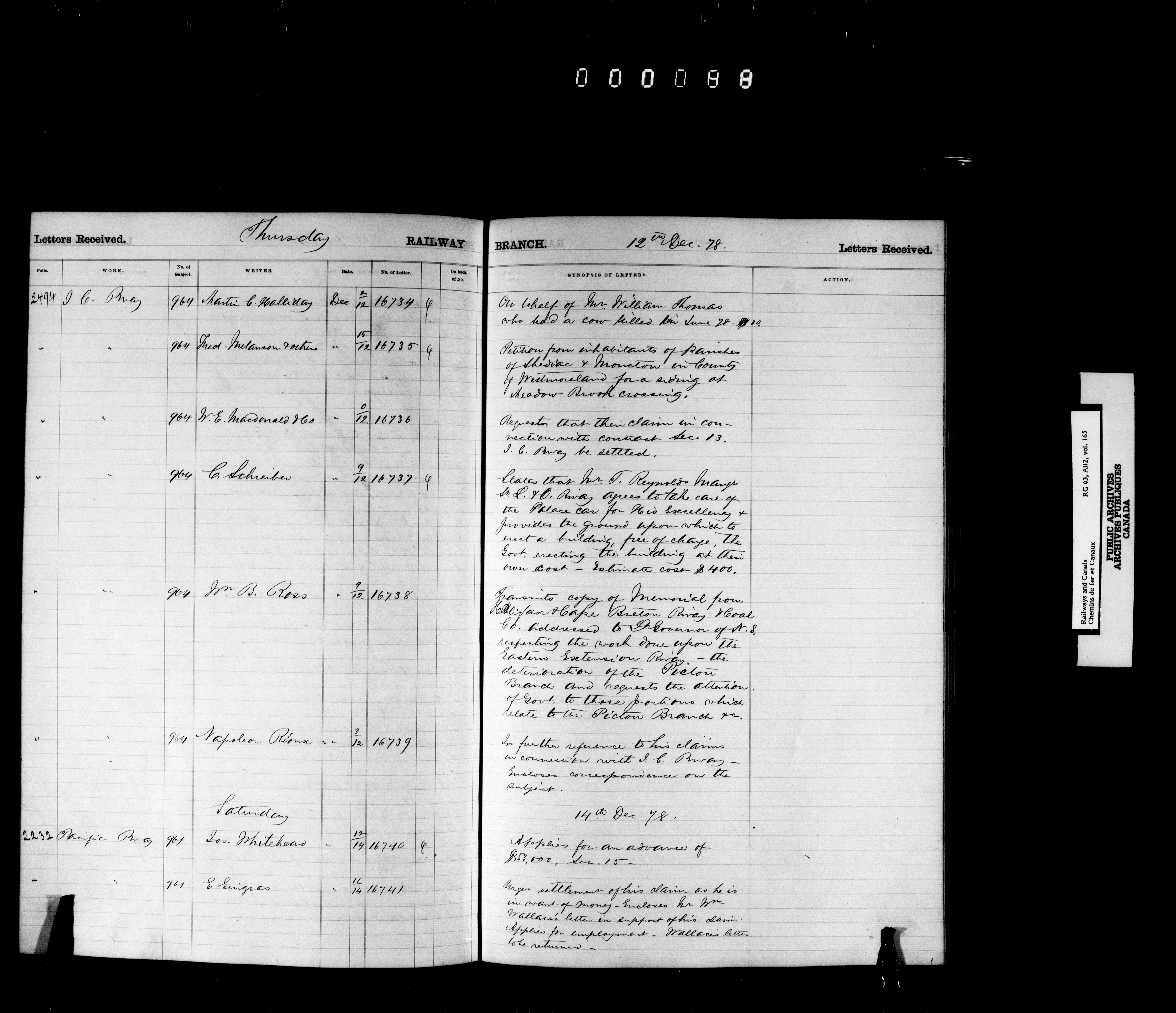 Railway Branch, Registers, Indexes and Journals, 1867-1936 - 7368