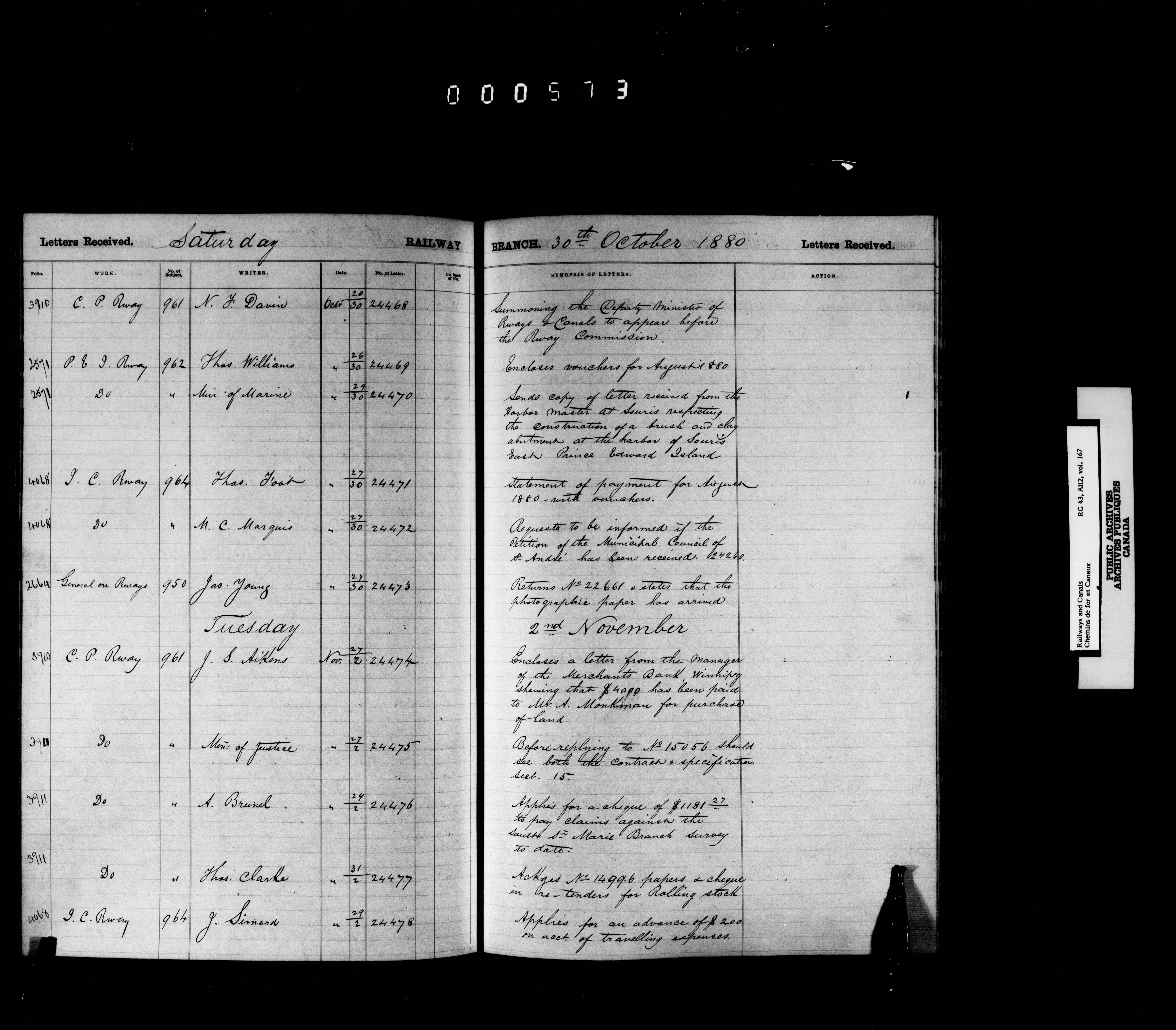 Railway Branch, Registers, Indexes and Journals, 1867-1936 - 7369