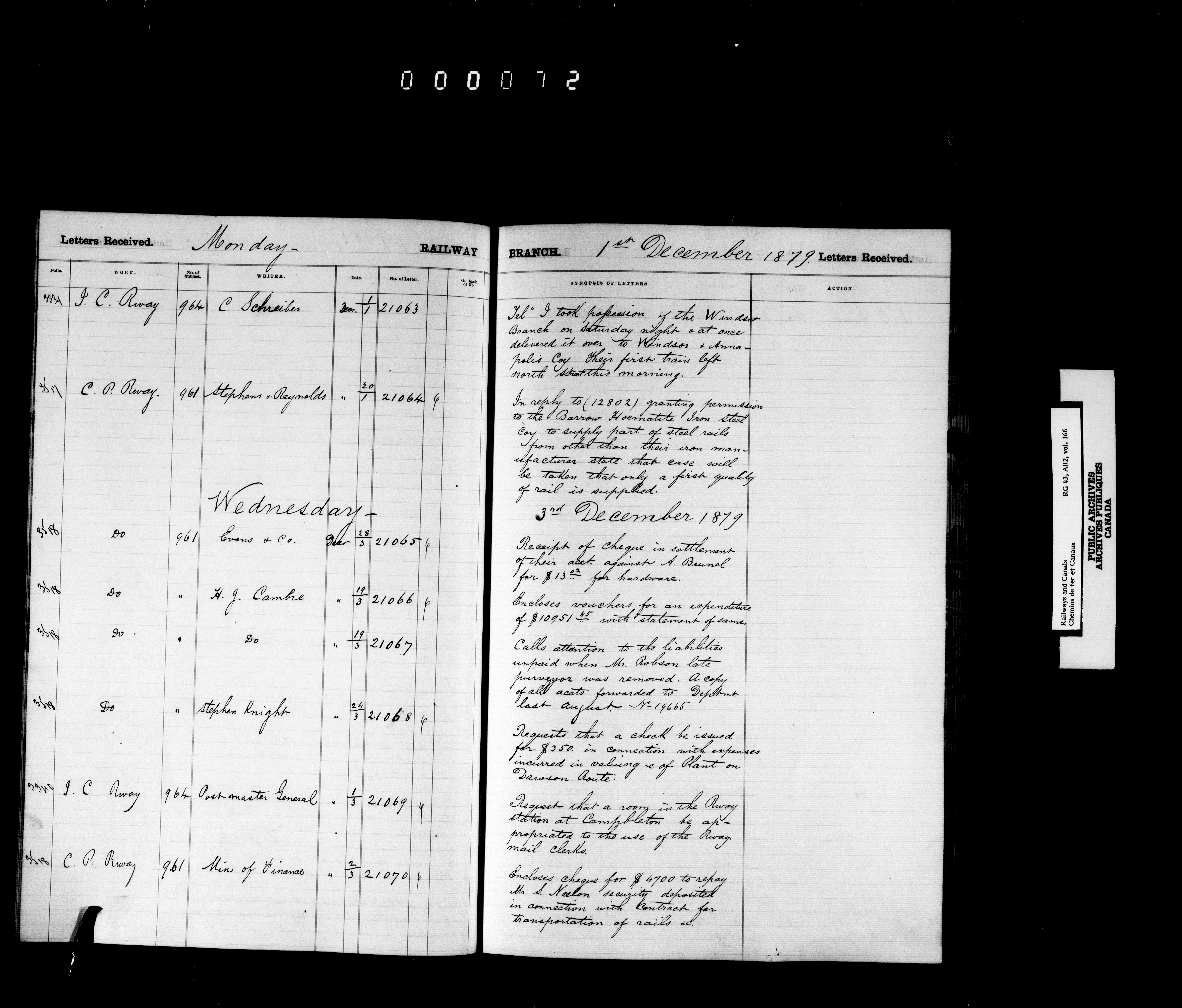 Railway Branch, Registers, Indexes and Journals, 1867-1936 - 7369