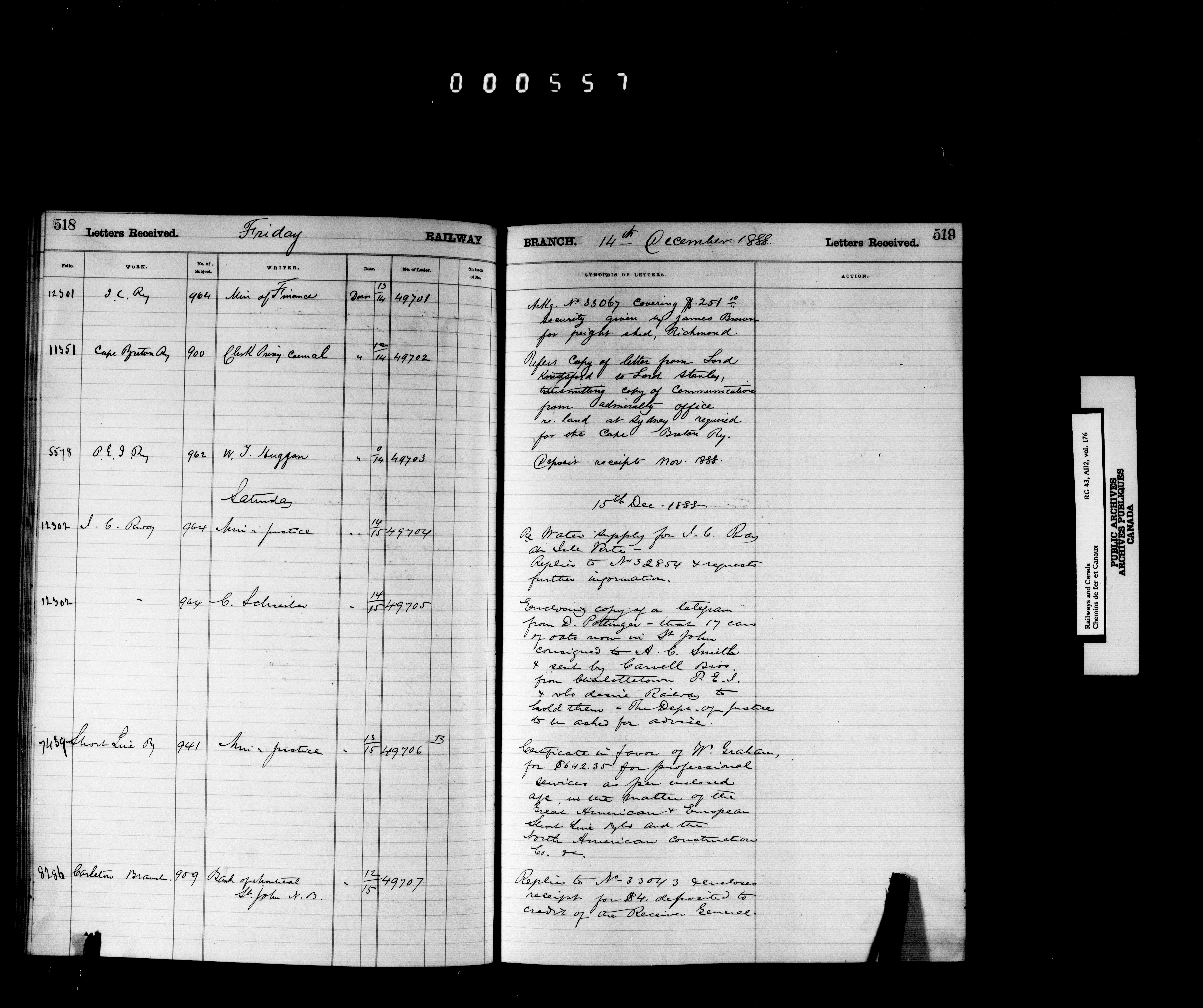 Railway Branch, Registers, Indexes and Journals, 1867-1936 - 7375