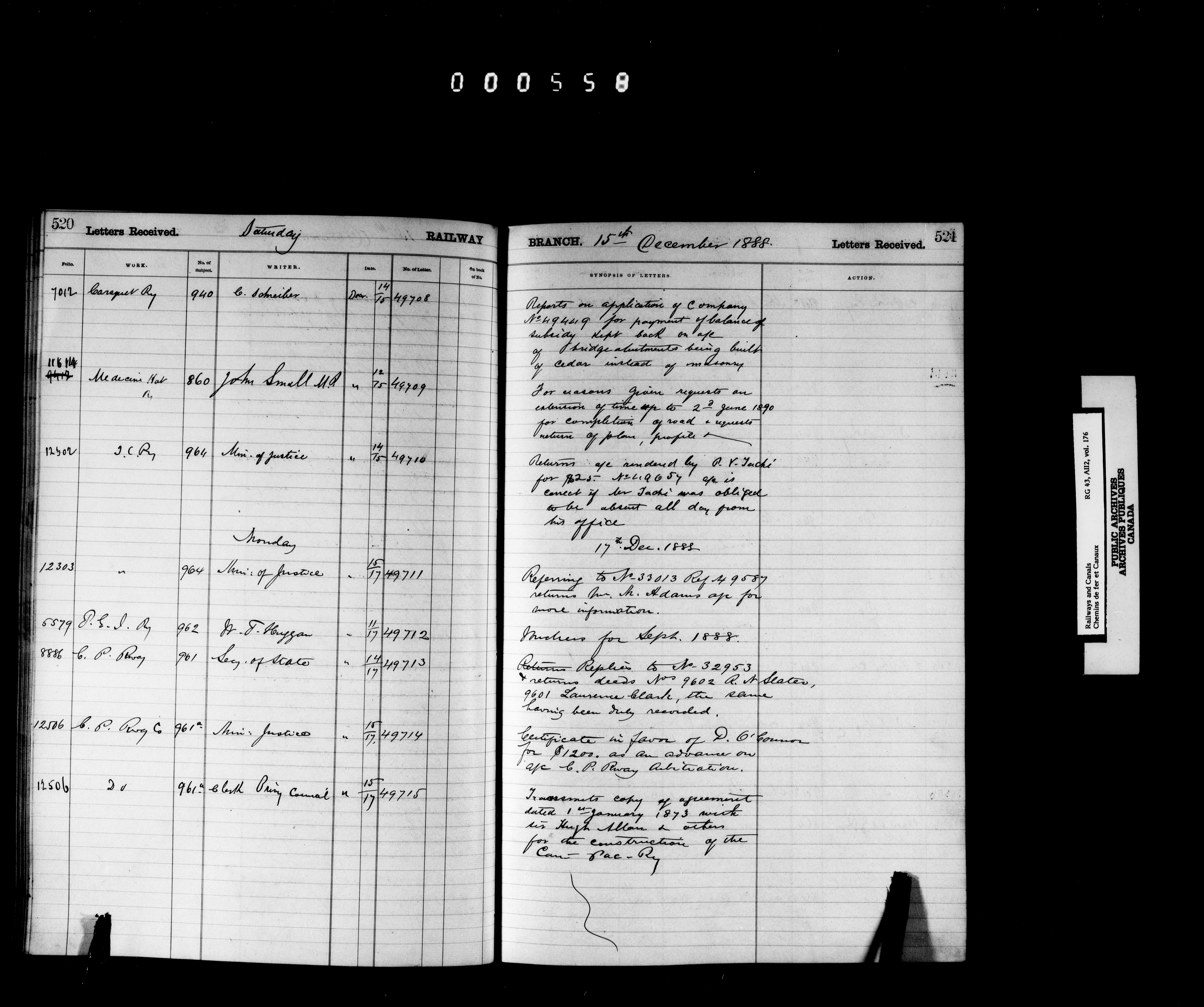 Railway Branch, Registers, Indexes and Journals, 1867-1936 - 7375