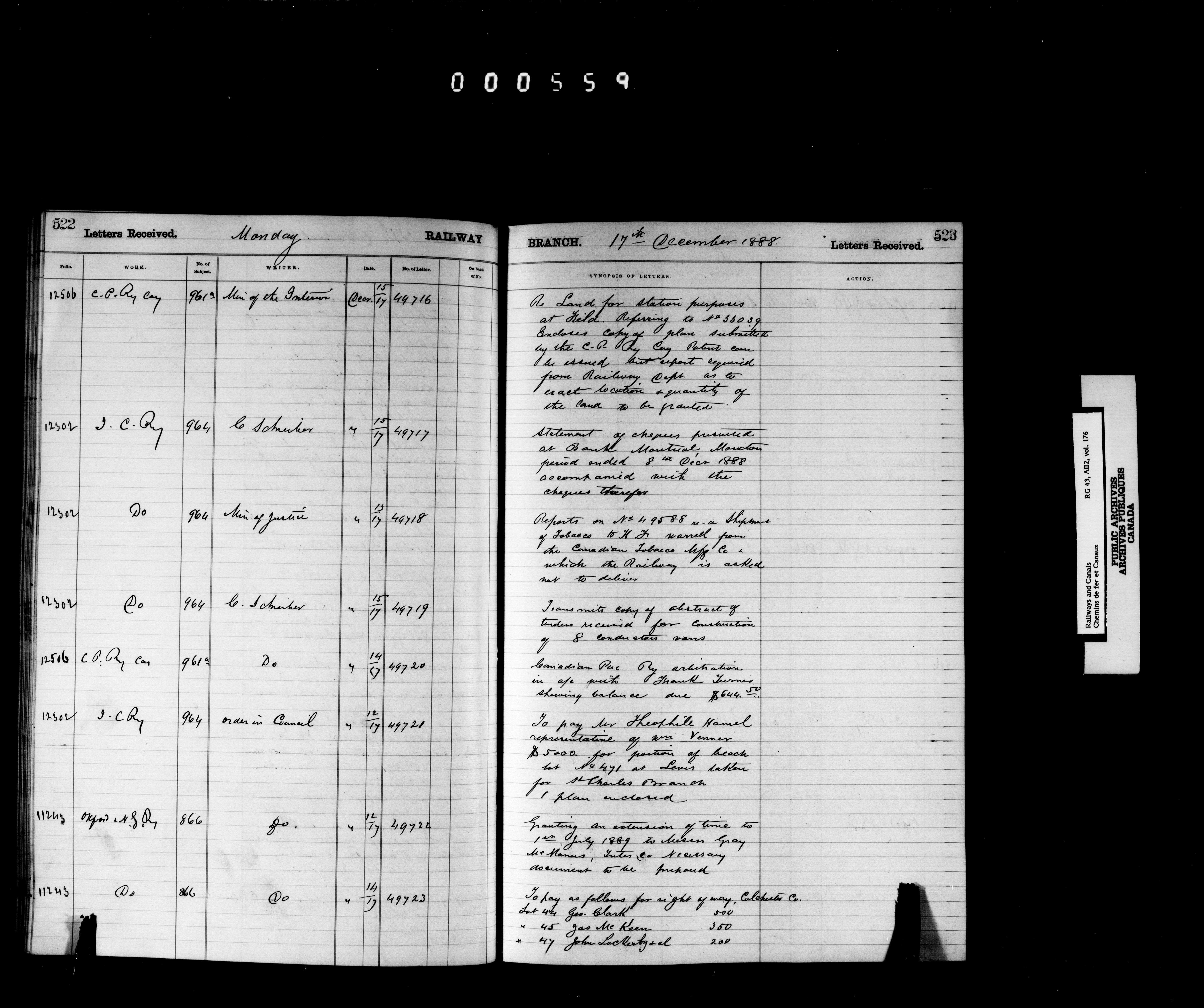 Railway Branch, Registers, Indexes and Journals, 1867-1936 - 7375