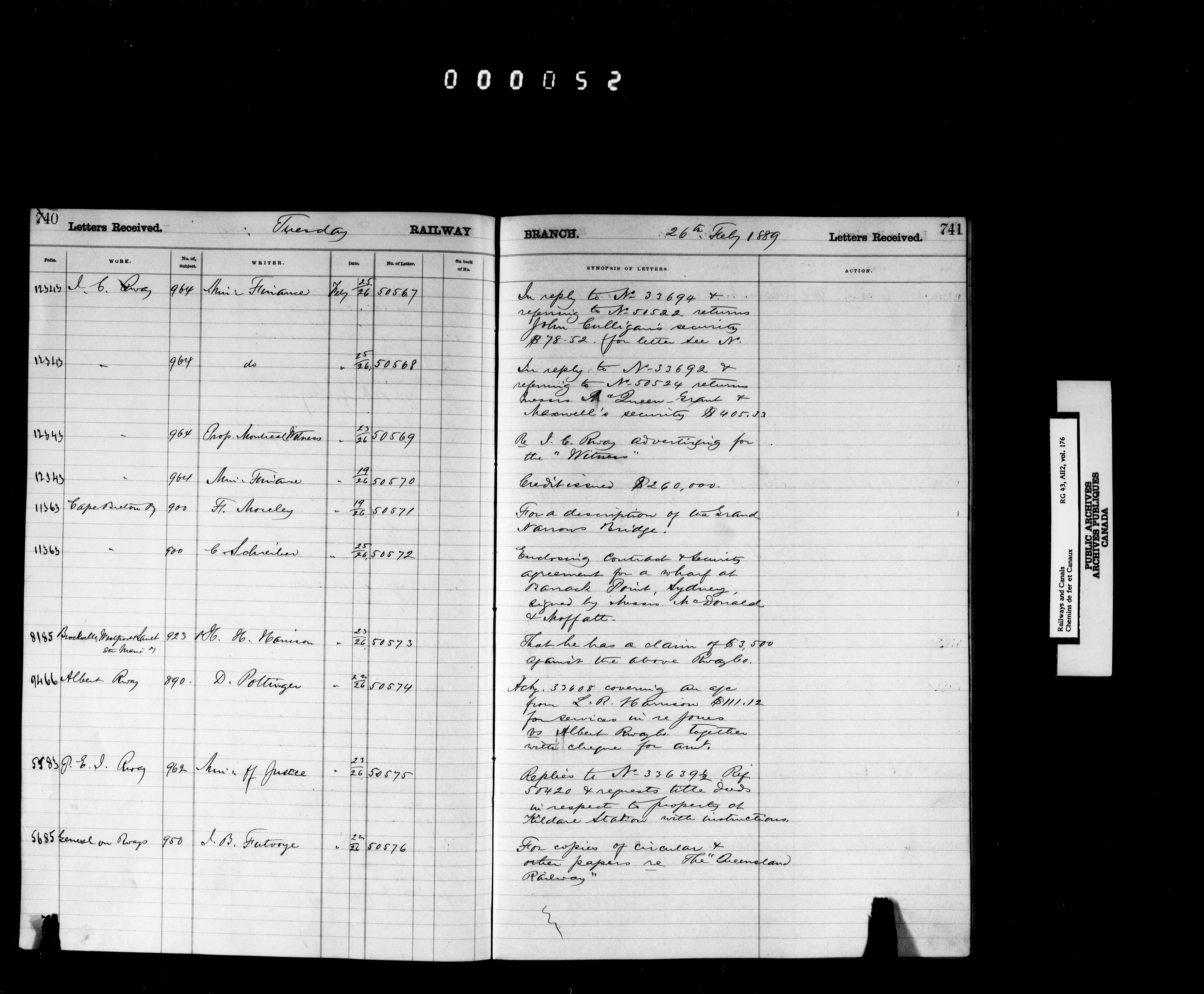Railway Branch, Registers, Indexes and Journals, 1867-1936 - 7377