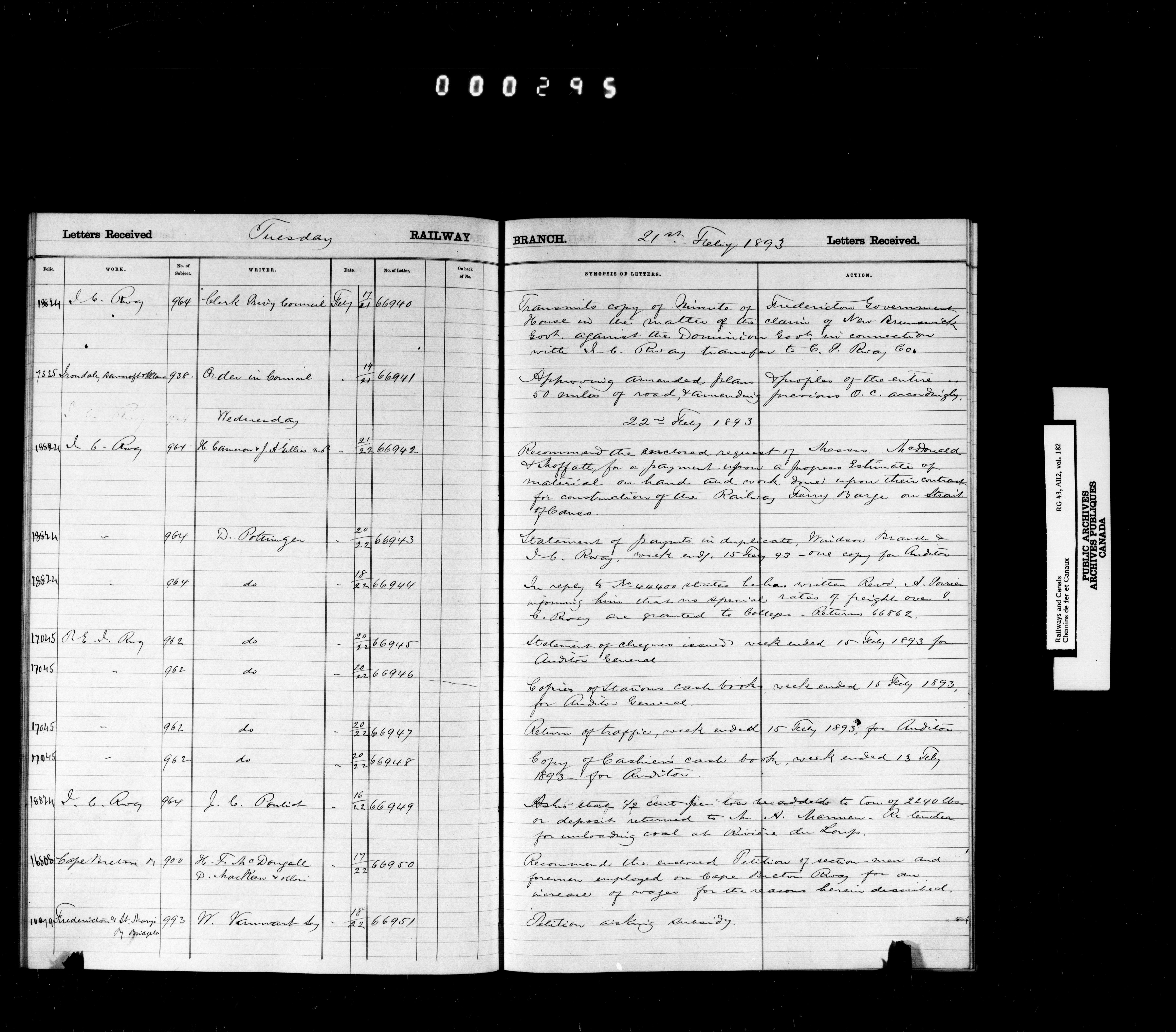 Railway Branch, Registers, Indexes and Journals, 1867-1936 - 7380