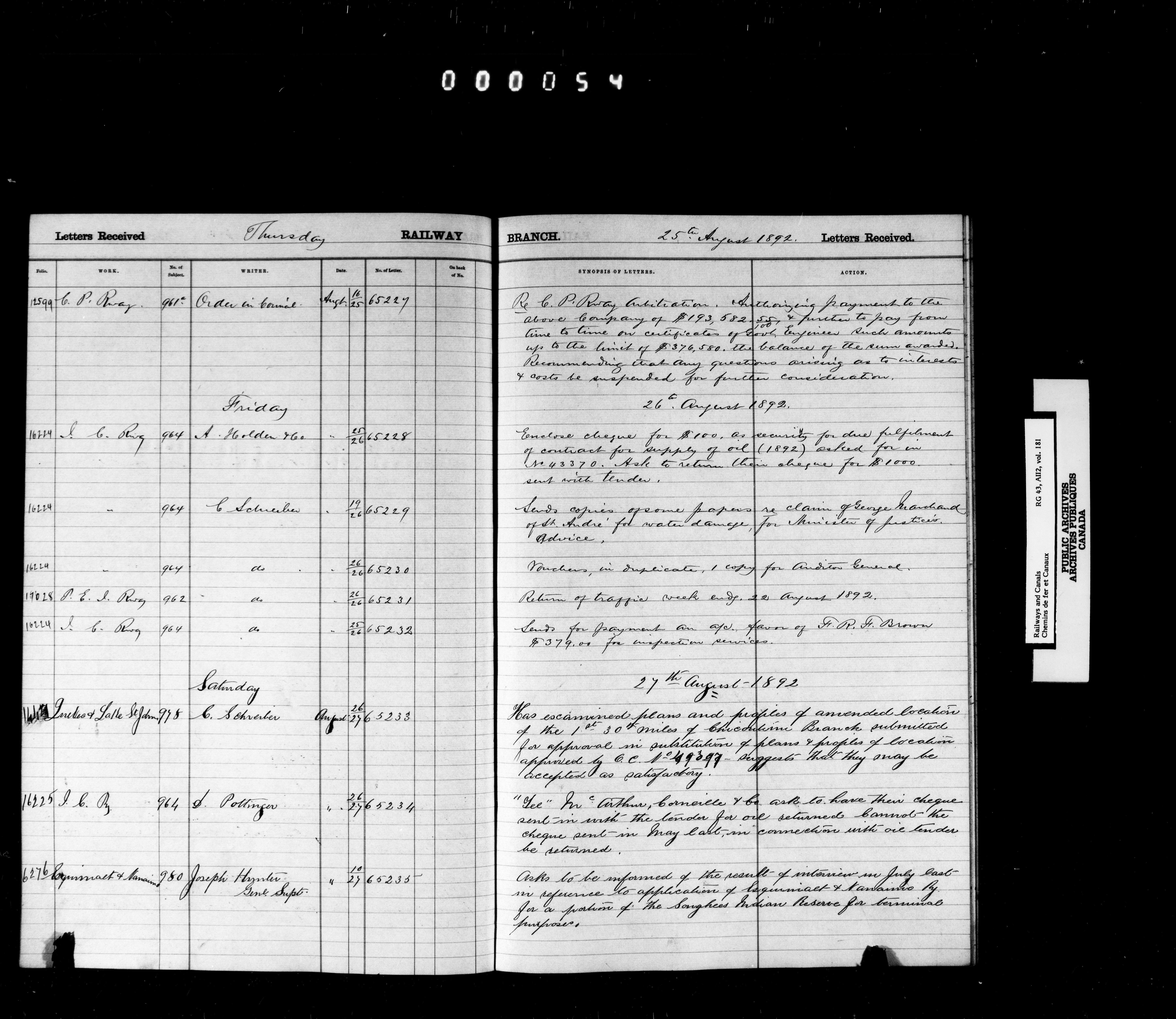 Railway Branch, Registers, Indexes and Journals, 1867-1936 - 7380