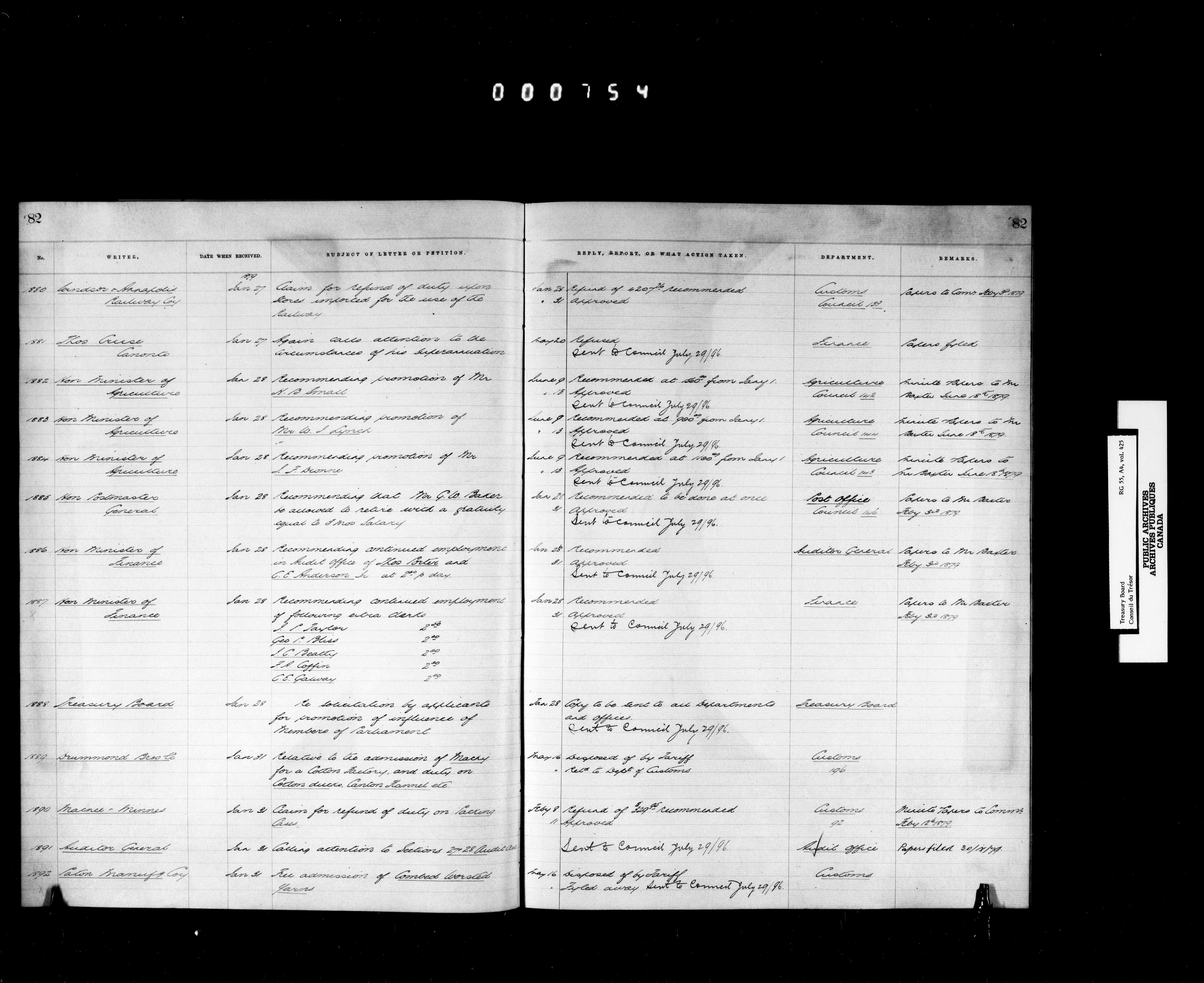 Treasury Board (Committee of the Privy Council) : indexes and registers, 1886-1995 - 7381