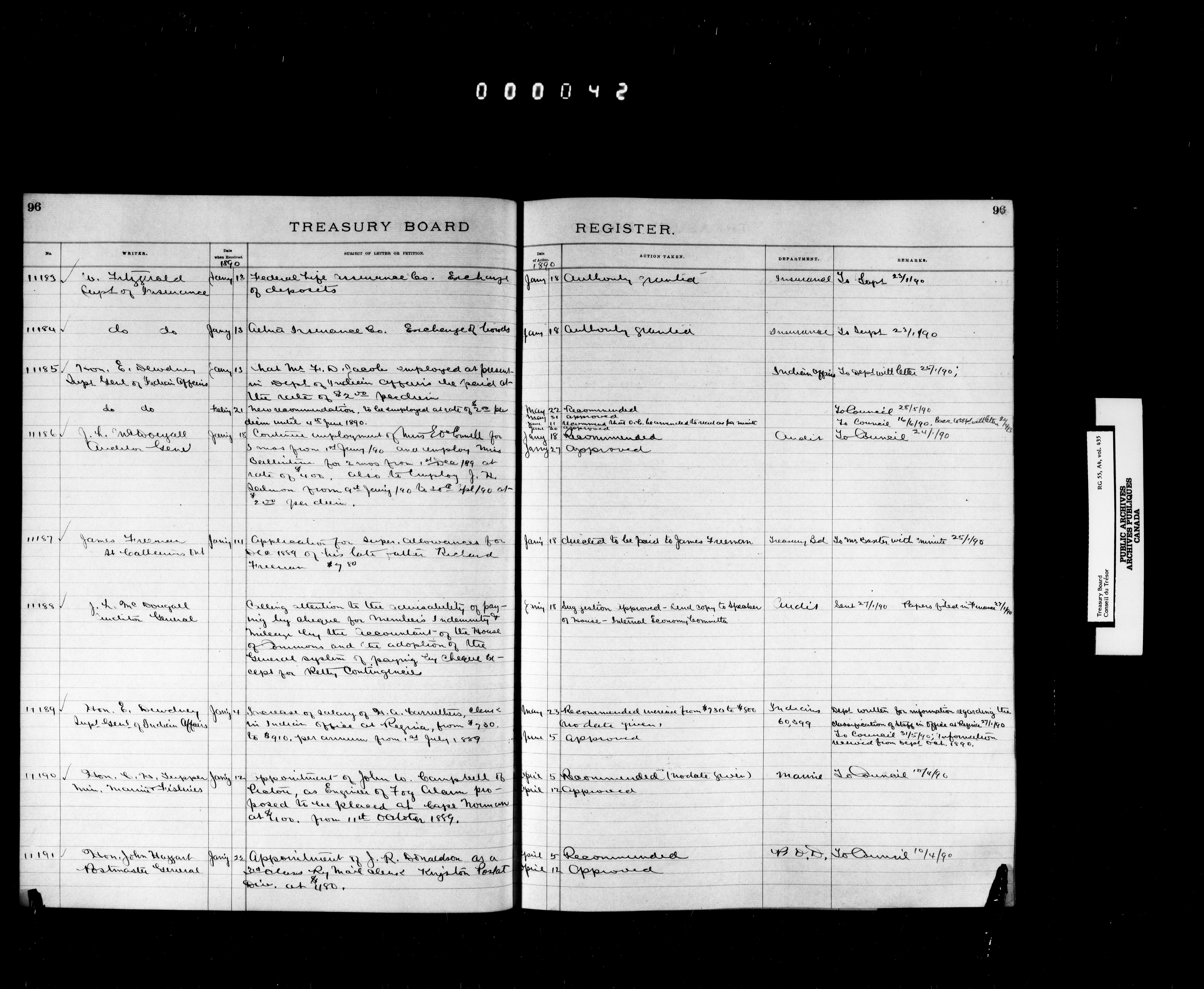 Treasury Board (Committee of the Privy Council) : indexes and registers, 1886-1995 - 7384