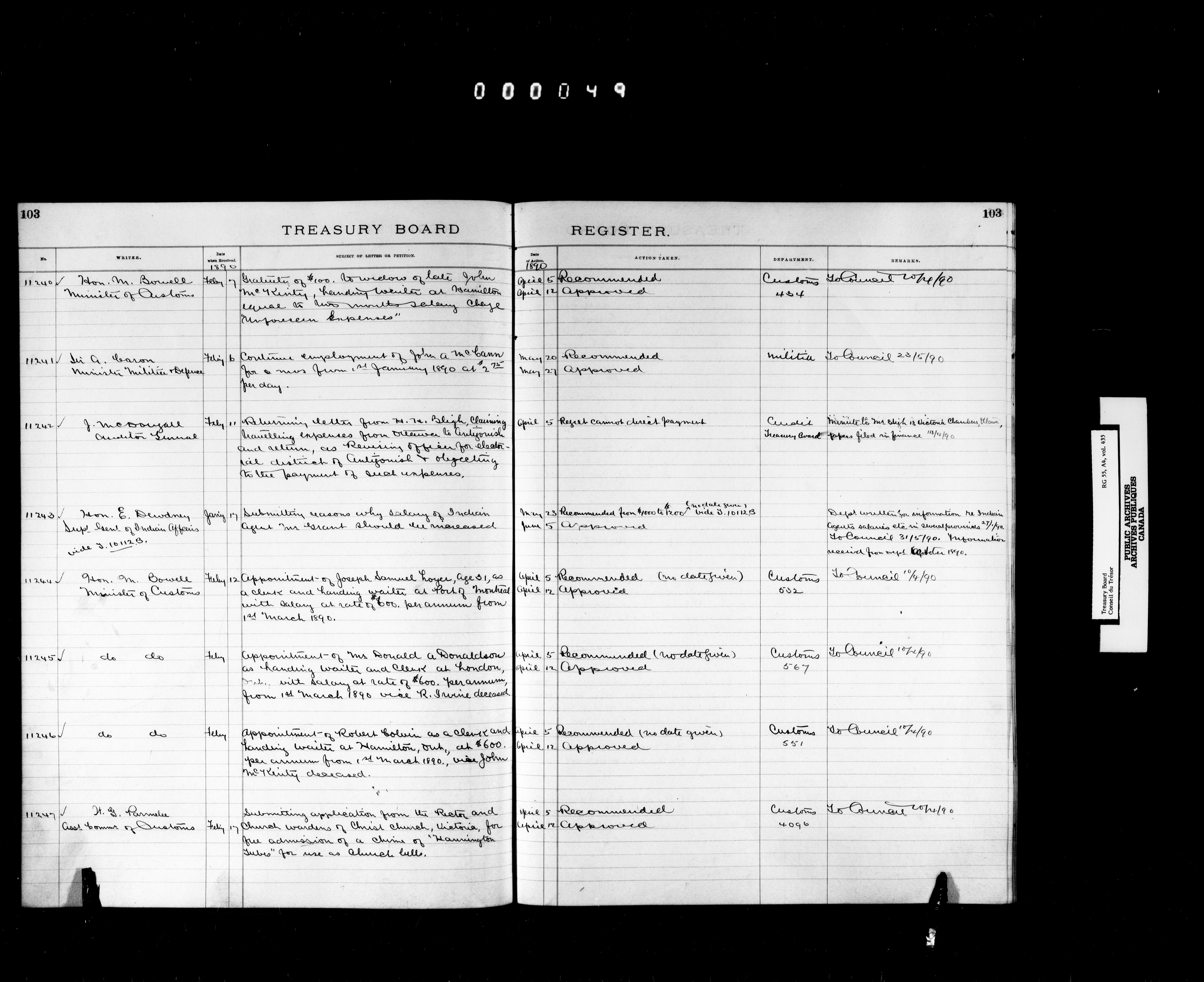 Treasury Board (Committee of the Privy Council) : indexes and registers, 1886-1995 - 7384