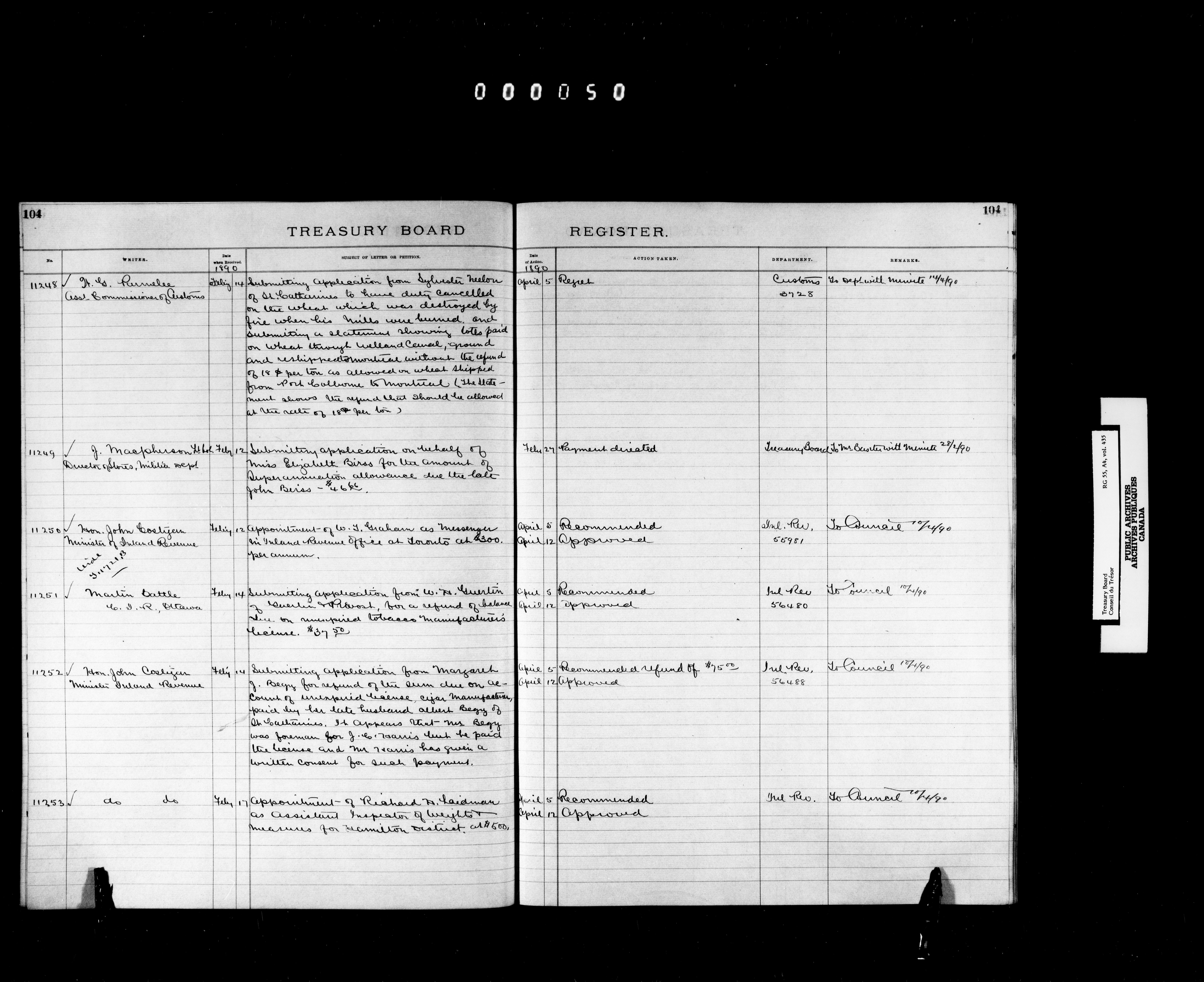 Treasury Board (Committee of the Privy Council) : indexes and registers, 1886-1995 - 7384