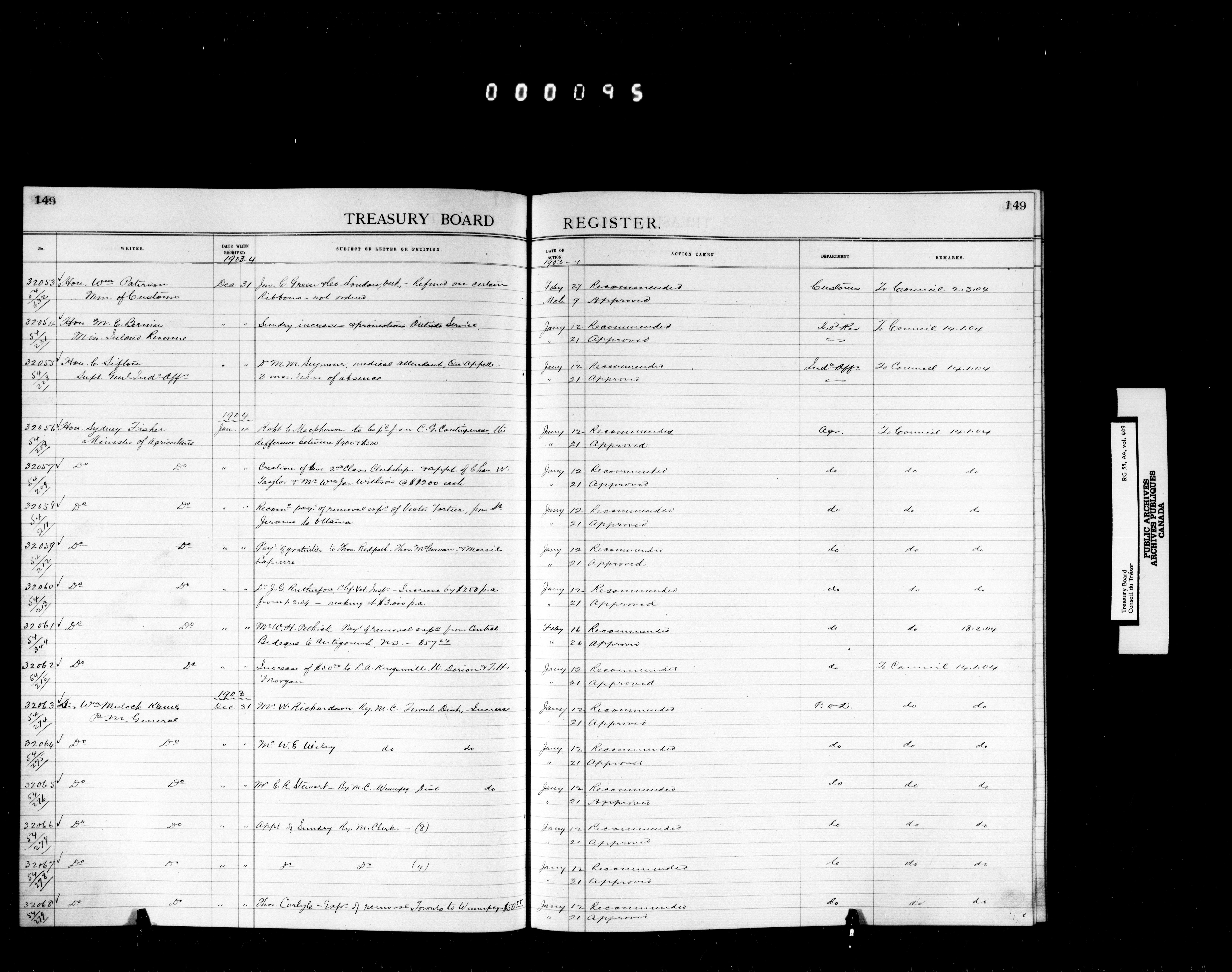 Treasury Board (Committee of the Privy Council) : indexes and registers, 1886-1995 - 7388