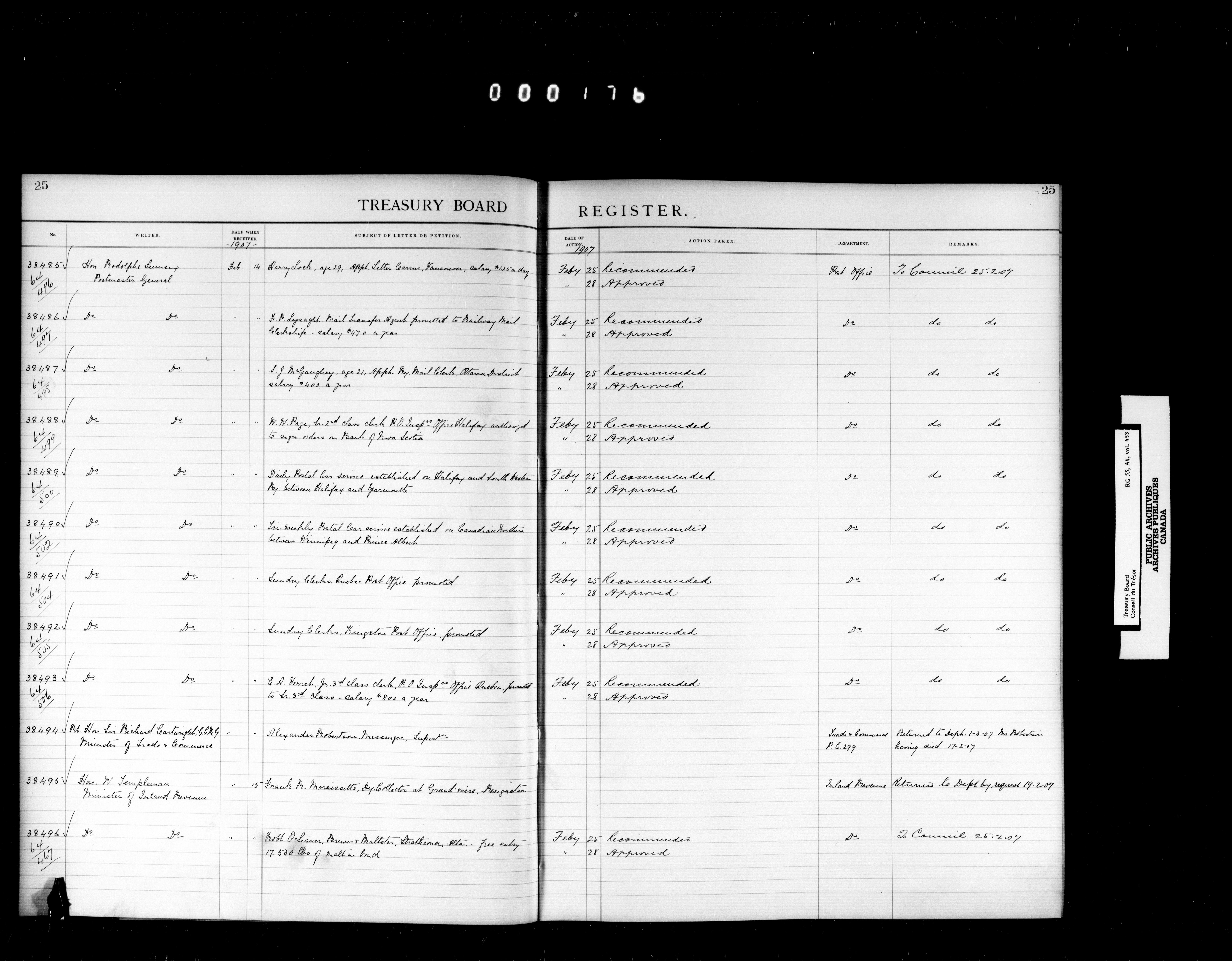 Treasury Board (Committee of the Privy Council) : indexes and registers, 1886-1995 - 7389
