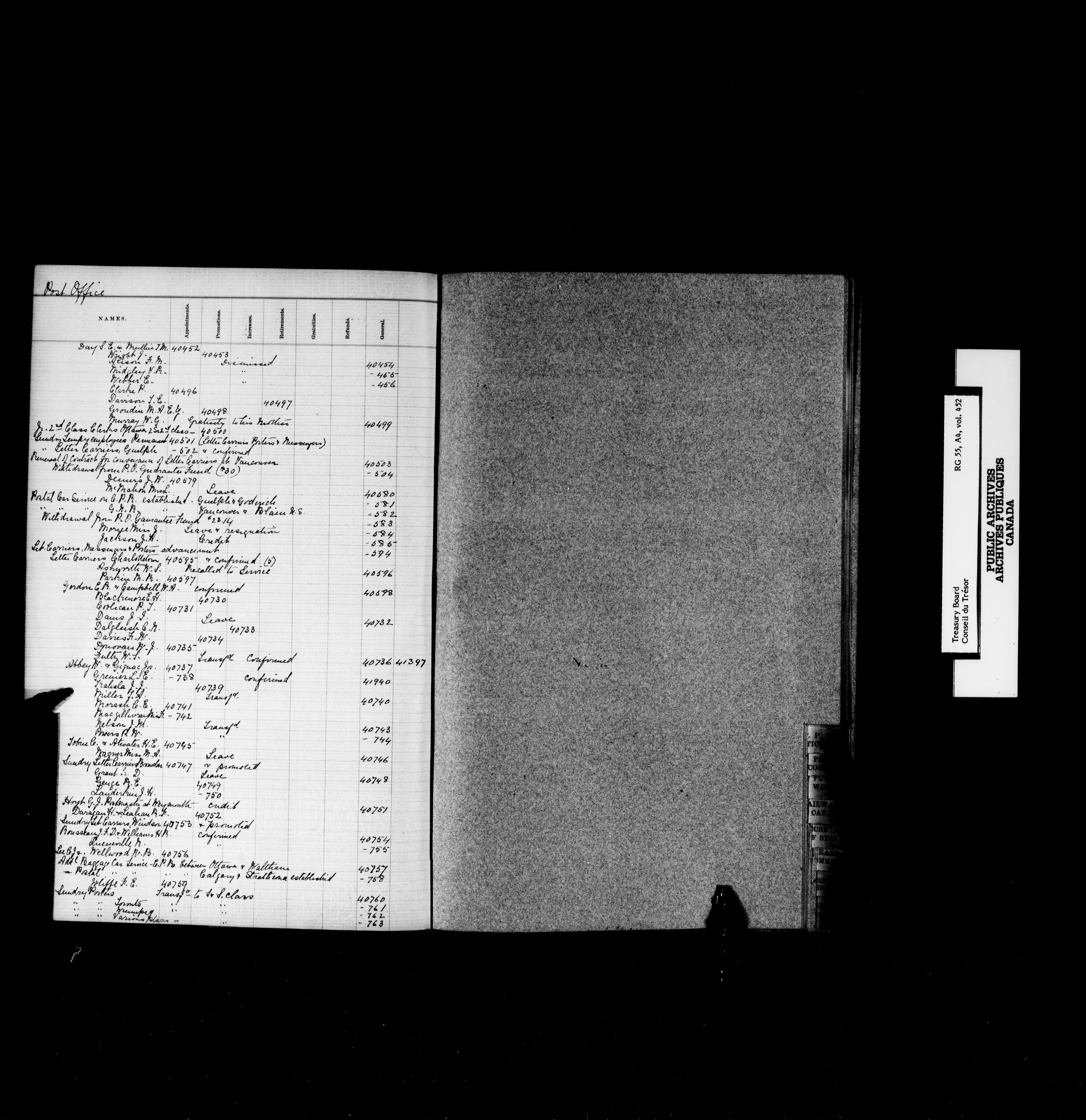 Treasury Board (Committee of the Privy Council) : indexes and registers, 1886-1995 - 7389