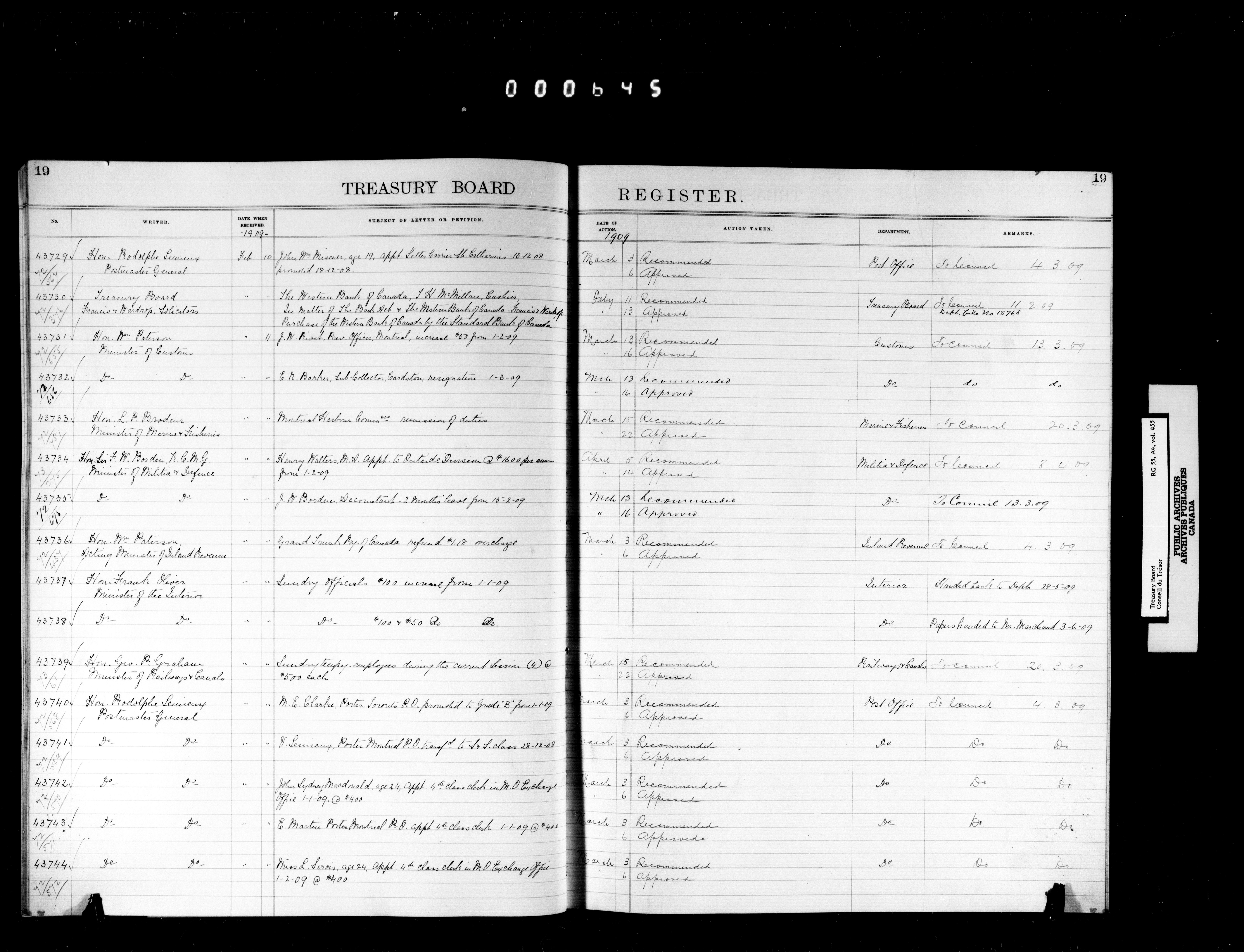 Treasury Board (Committee of the Privy Council) : indexes and registers, 1886-1995 - 7389