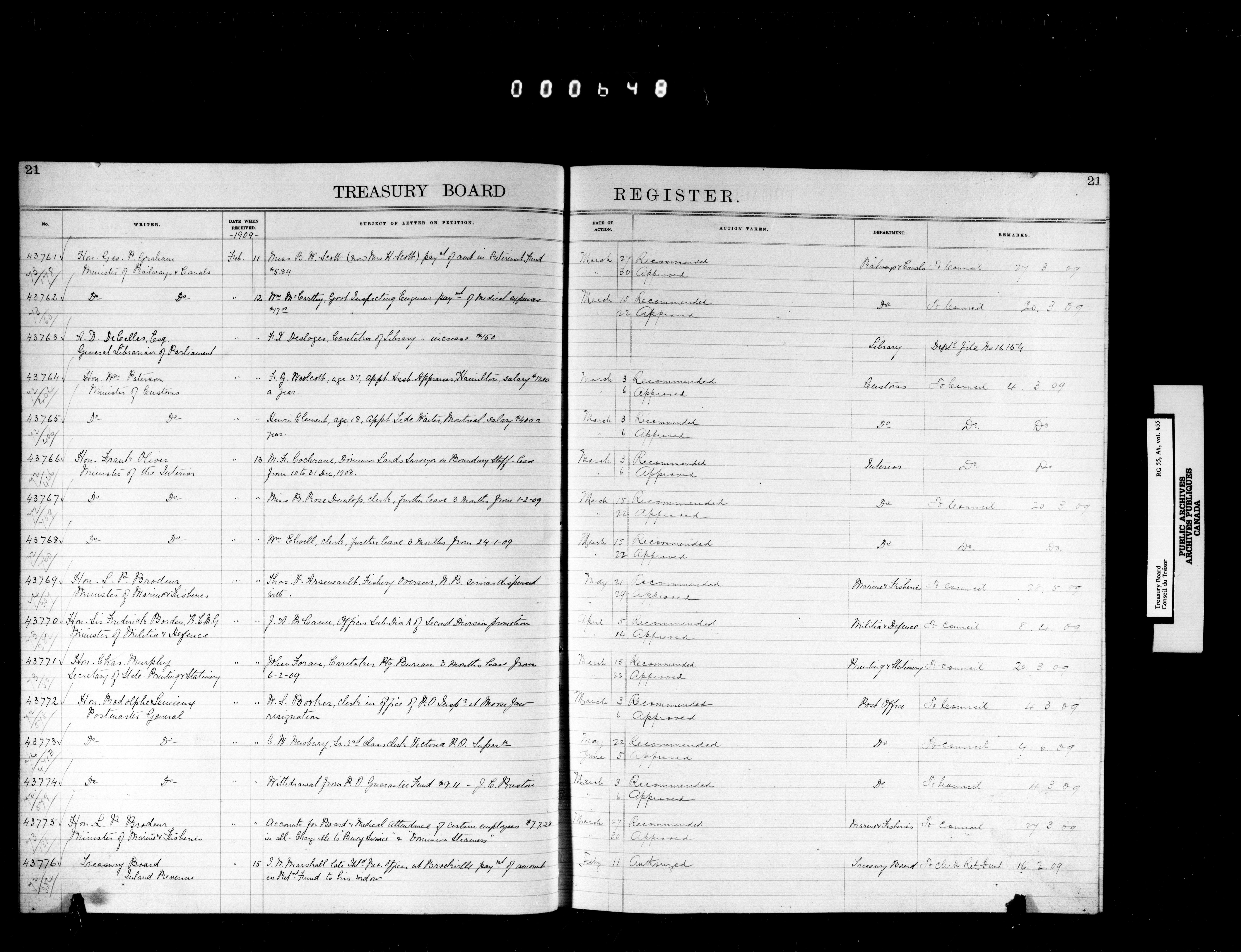 Treasury Board (Committee of the Privy Council) : indexes and registers, 1886-1995 - 7389