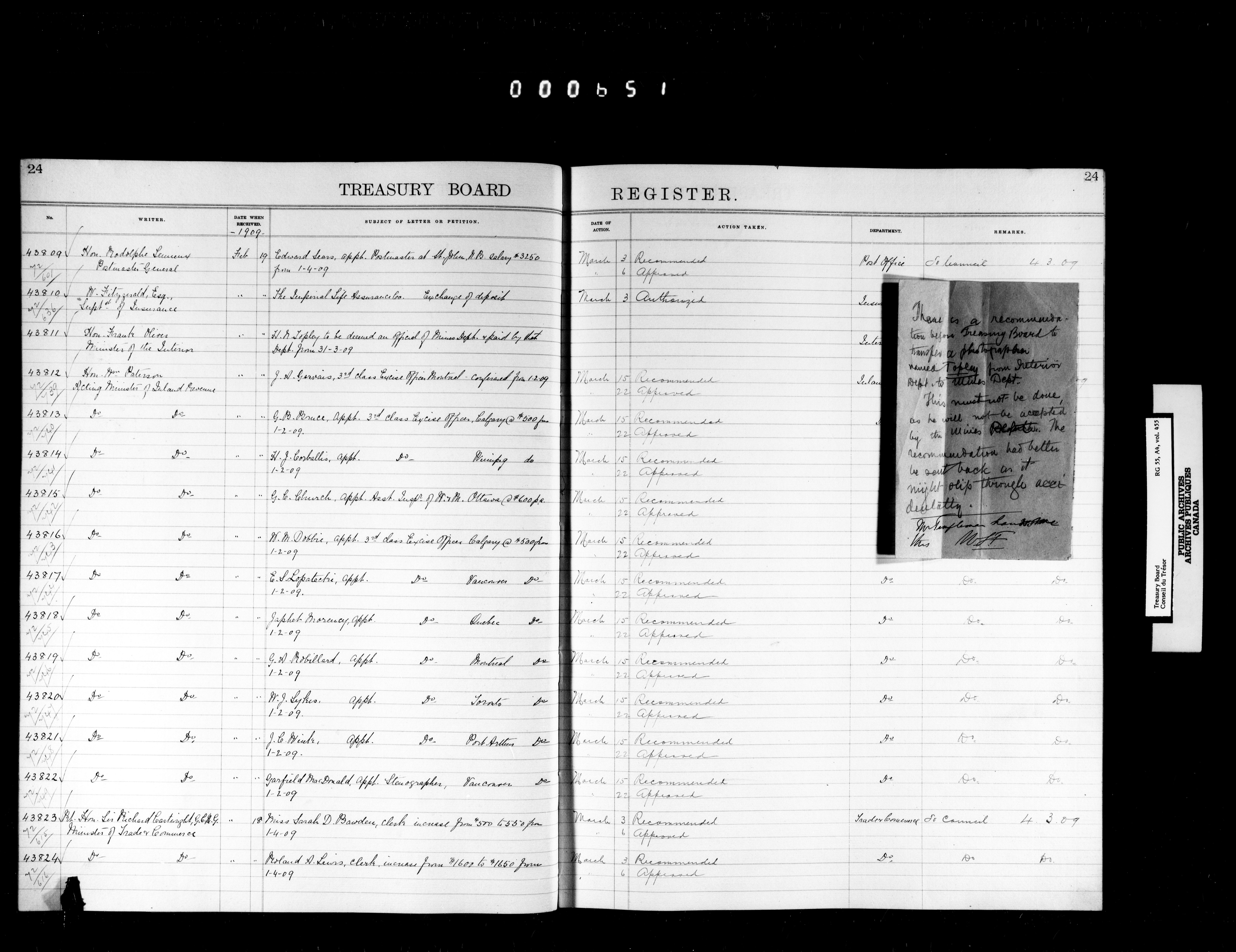 Treasury Board (Committee of the Privy Council) : indexes and registers : T-7389