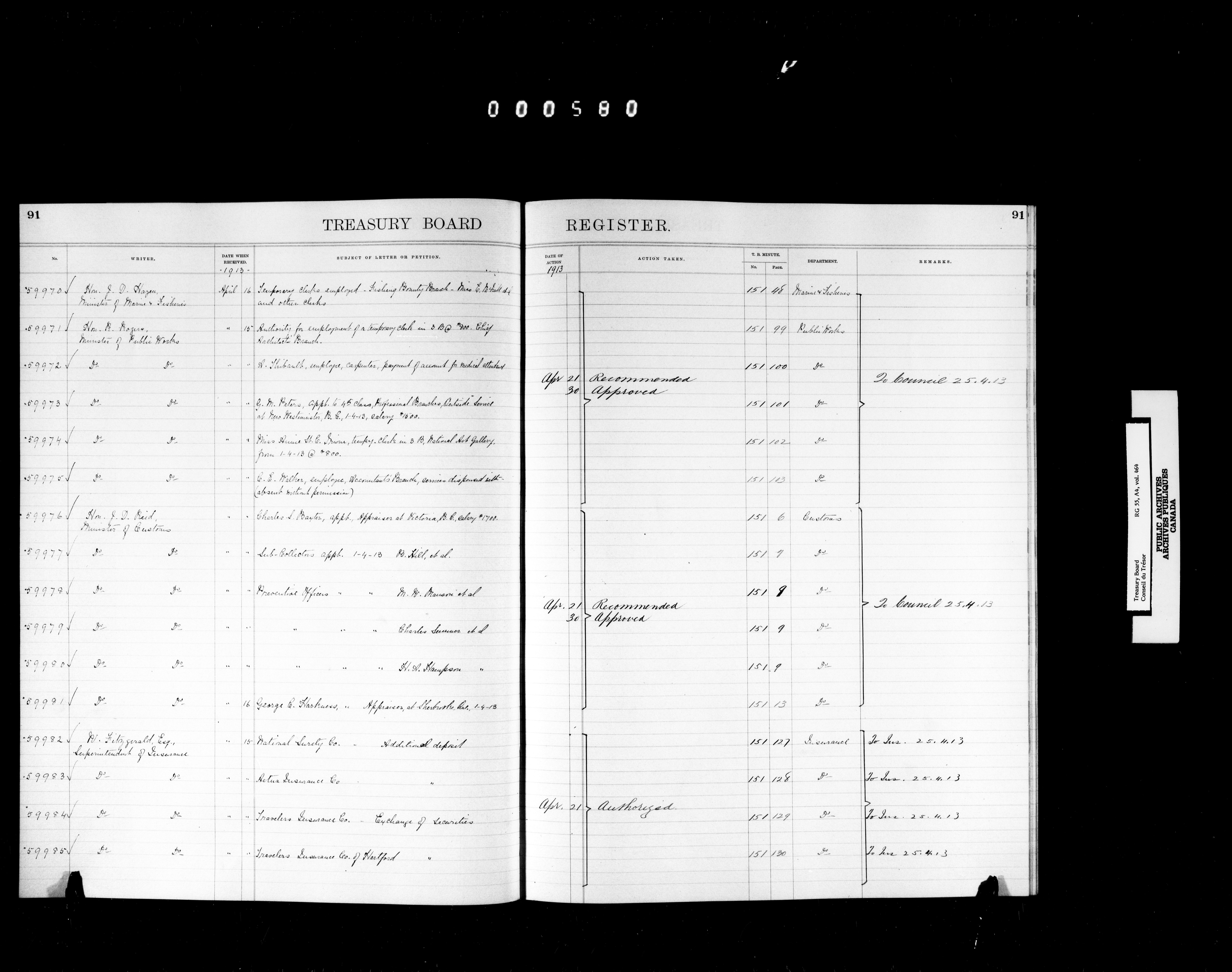 Treasury Board (Committee of the Privy Council) : indexes and registers, 1886-1995 - 7391