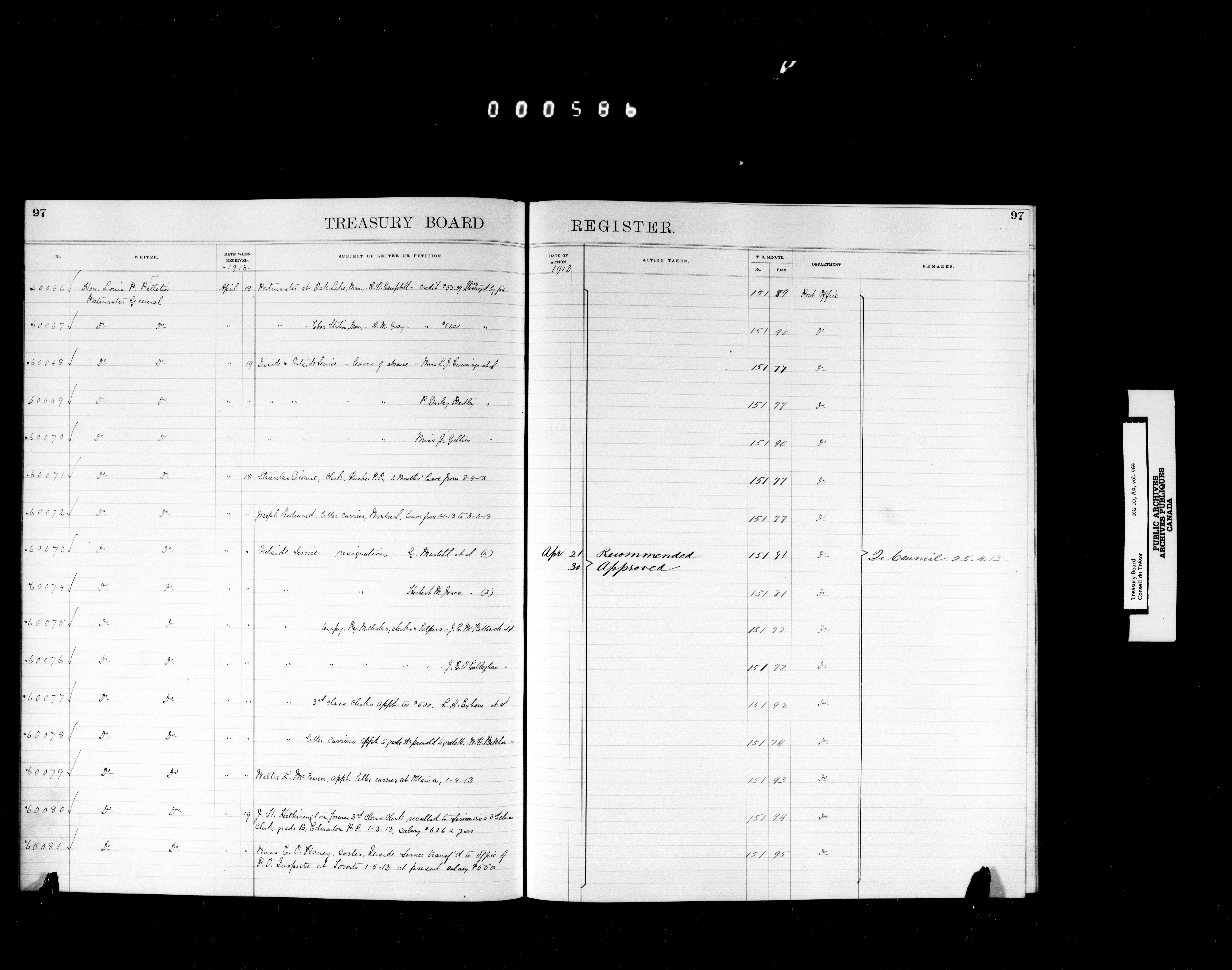 Treasury Board (Committee of the Privy Council) : indexes and registers, 1886-1995 - 7391