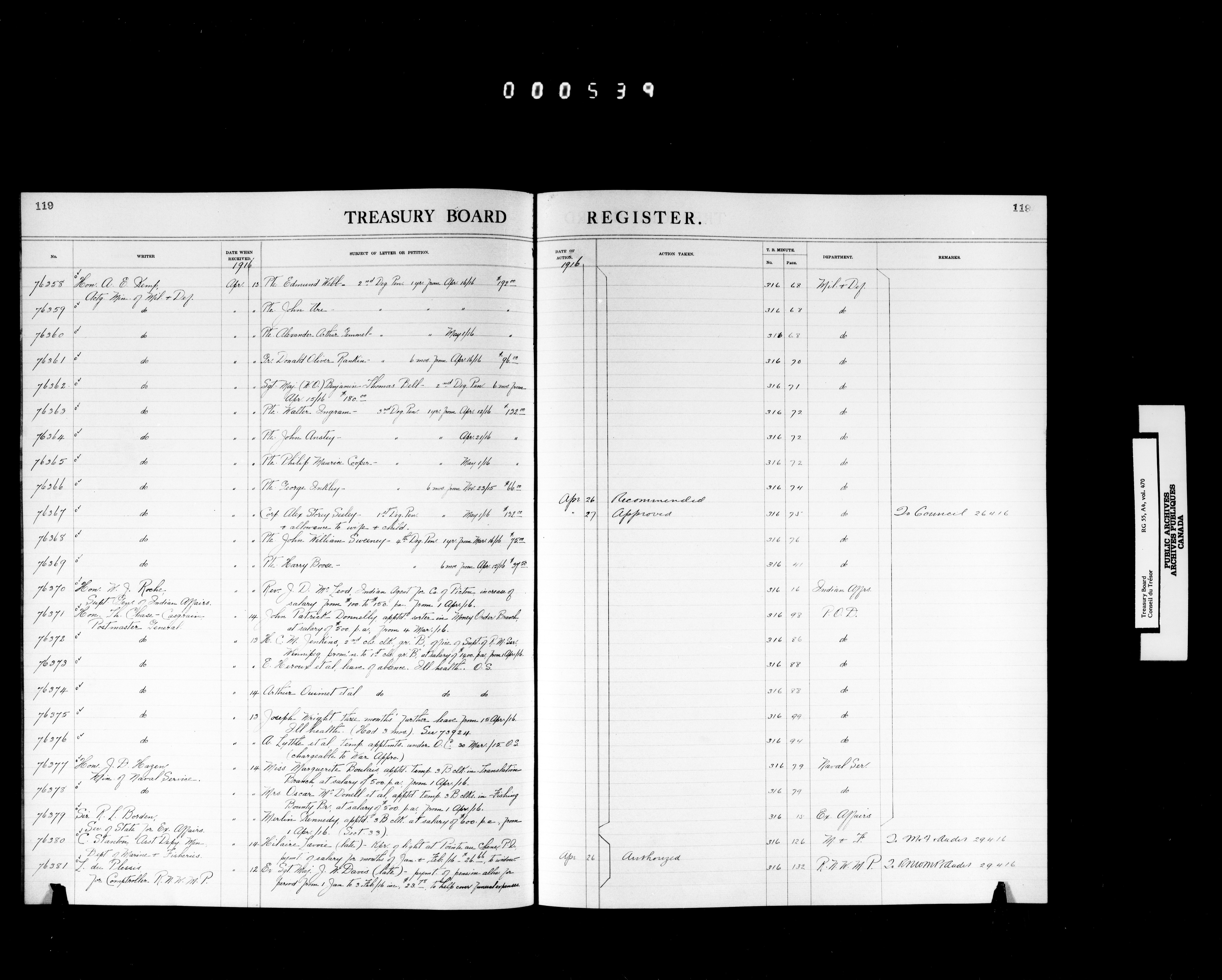 Treasury Board (Committee of the Privy Council) : indexes and registers, 1886-1995 - 7393