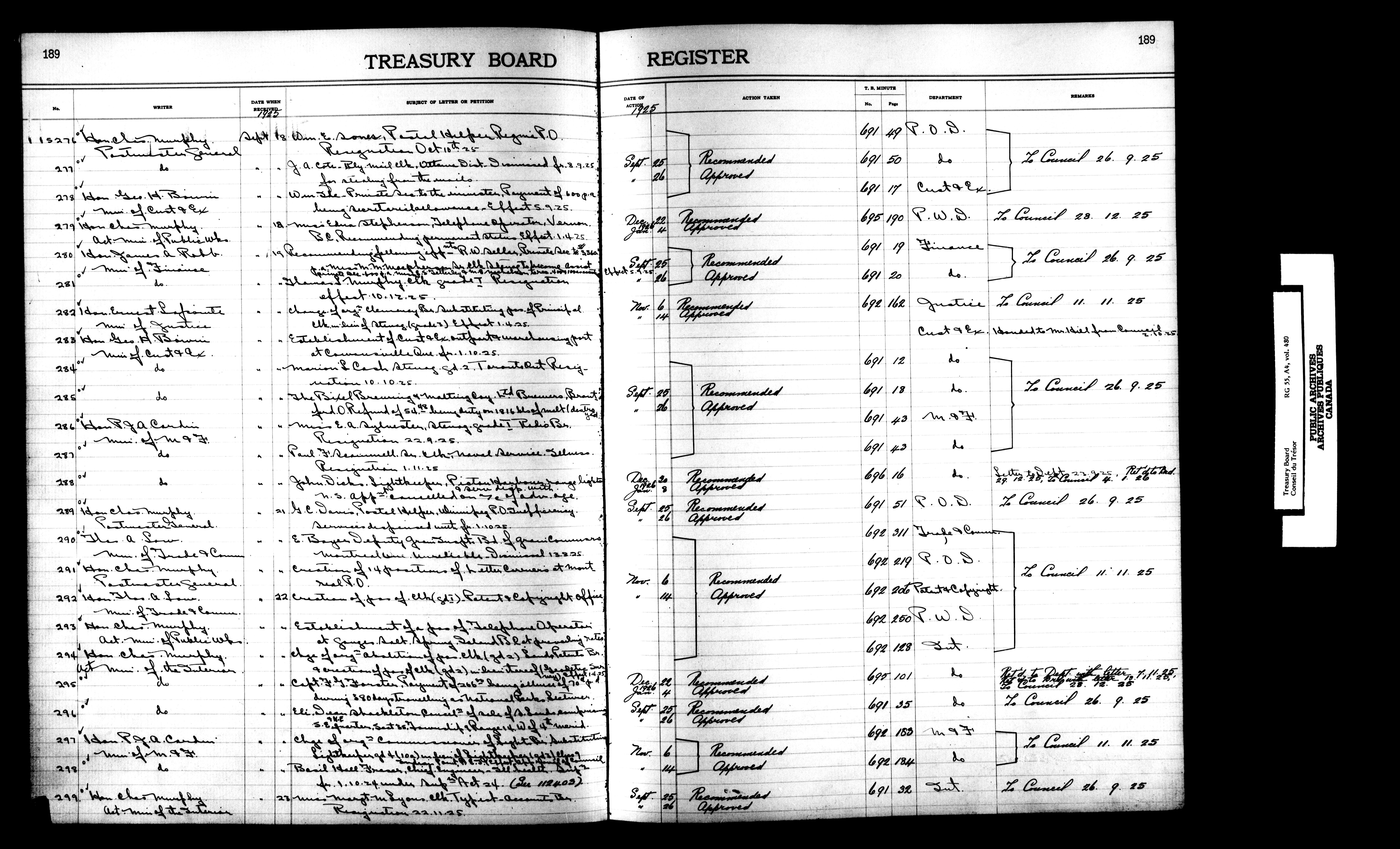 Treasury Board (Committee of the Privy Council) : indexes and registers, 1886-1995 - 7397