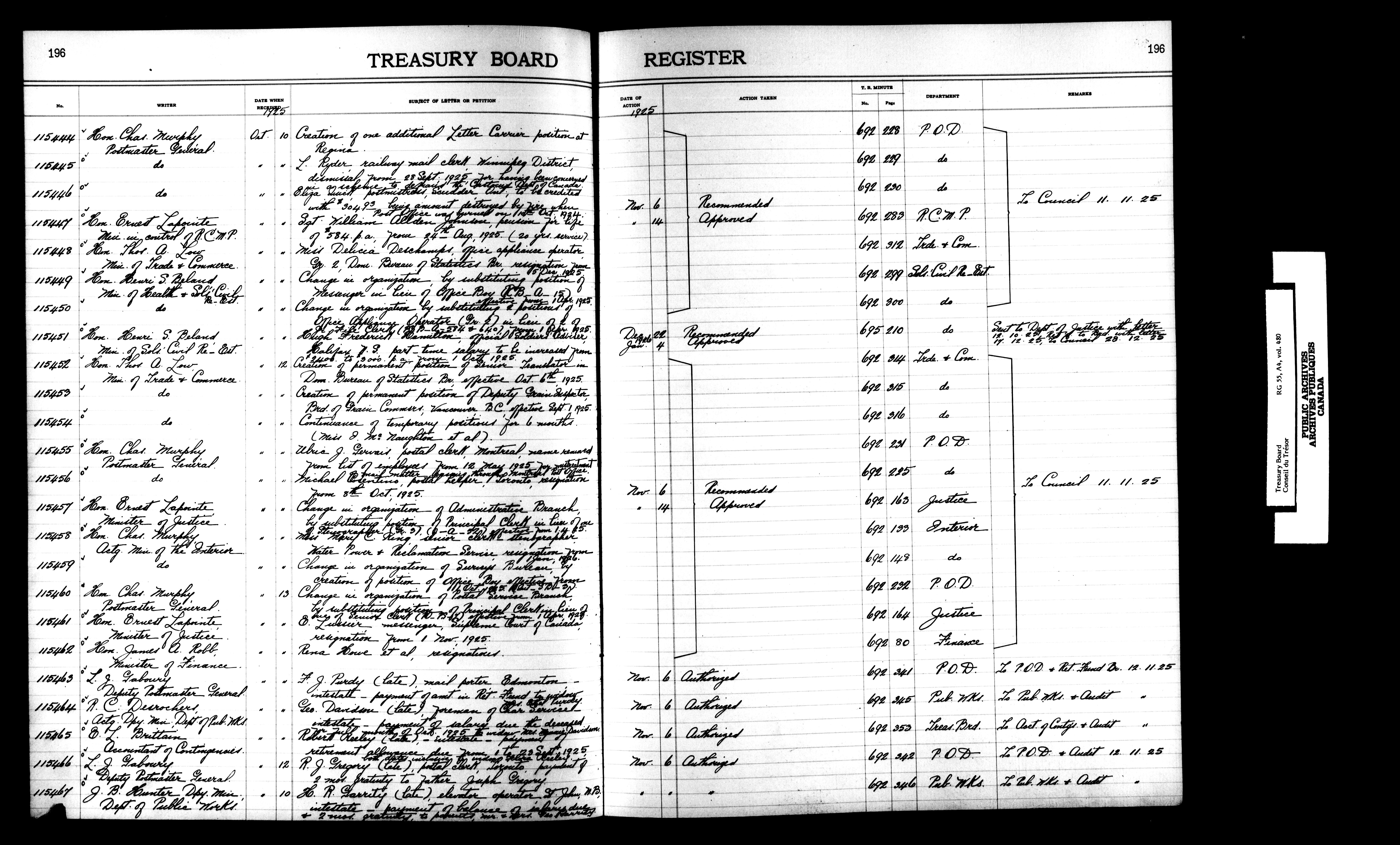 Treasury Board (Committee of the Privy Council) : indexes and registers, 1886-1995 - 7397
