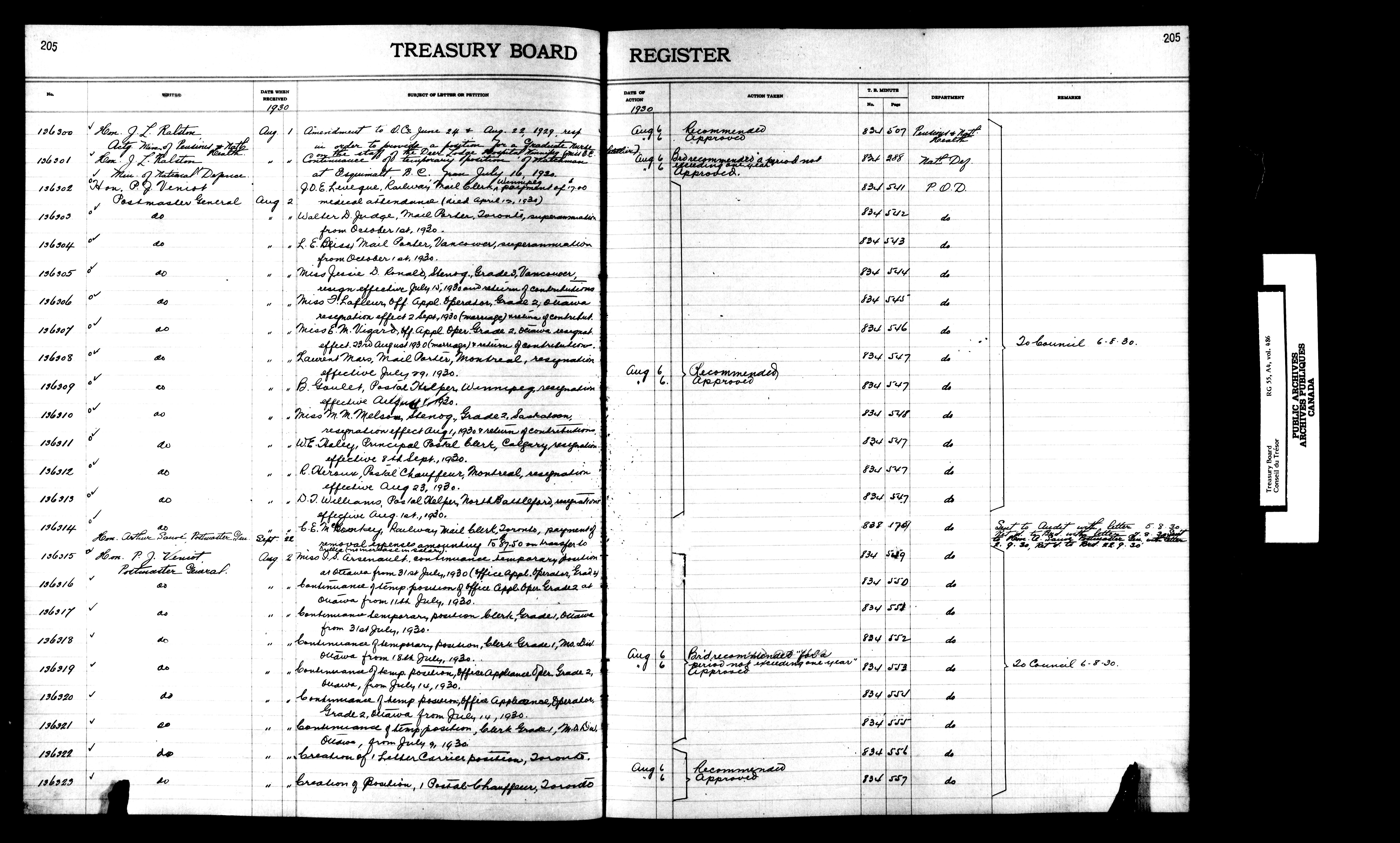 Treasury Board (Committee of the Privy Council) : indexes and registers, 1886-1995 - 7398