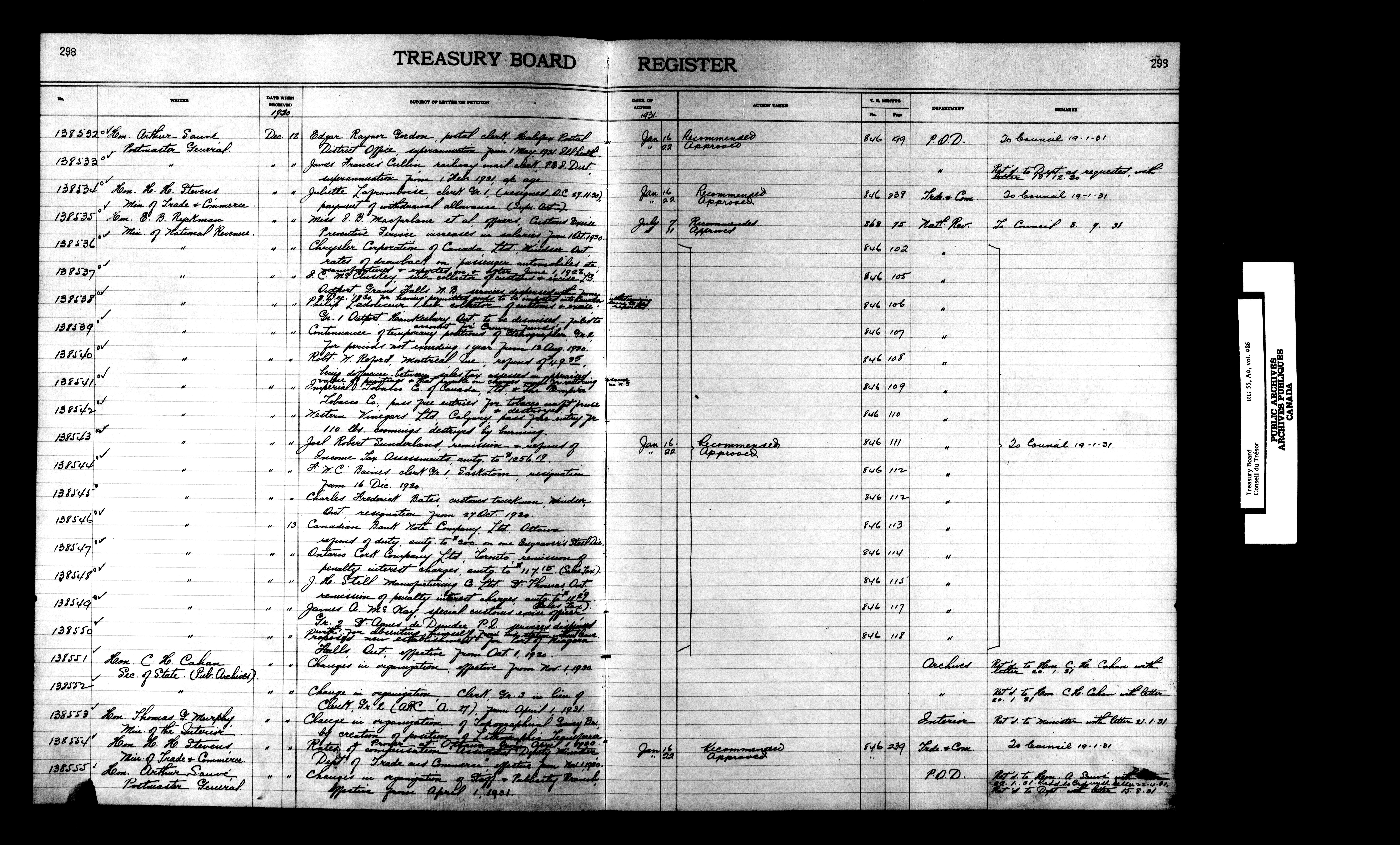 Treasury Board (Committee of the Privy Council) : indexes and registers, 1886-1995 - 7399