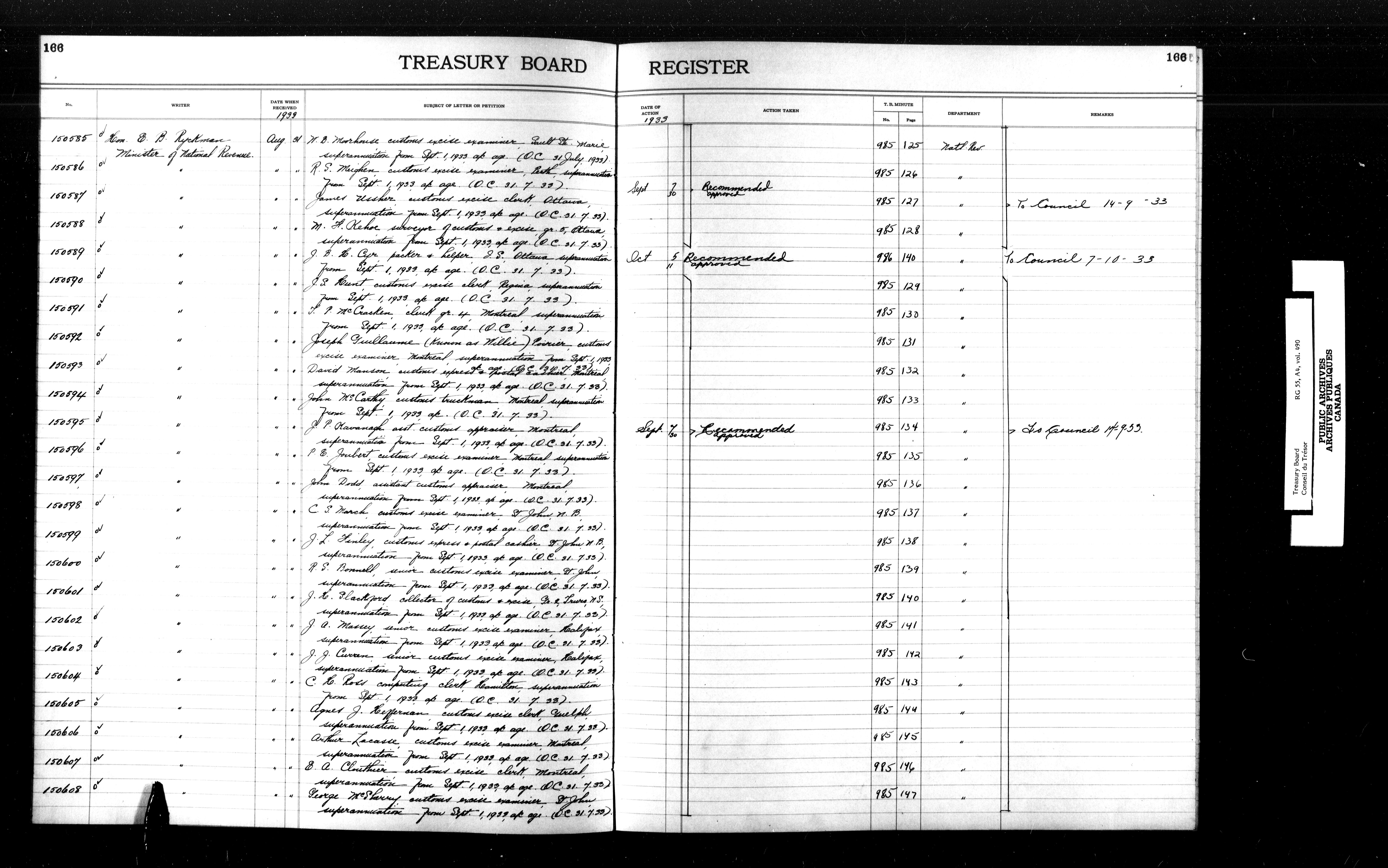 Treasury Board (Committee of the Privy Council) : indexes and registers, 1886-1995 - 7400