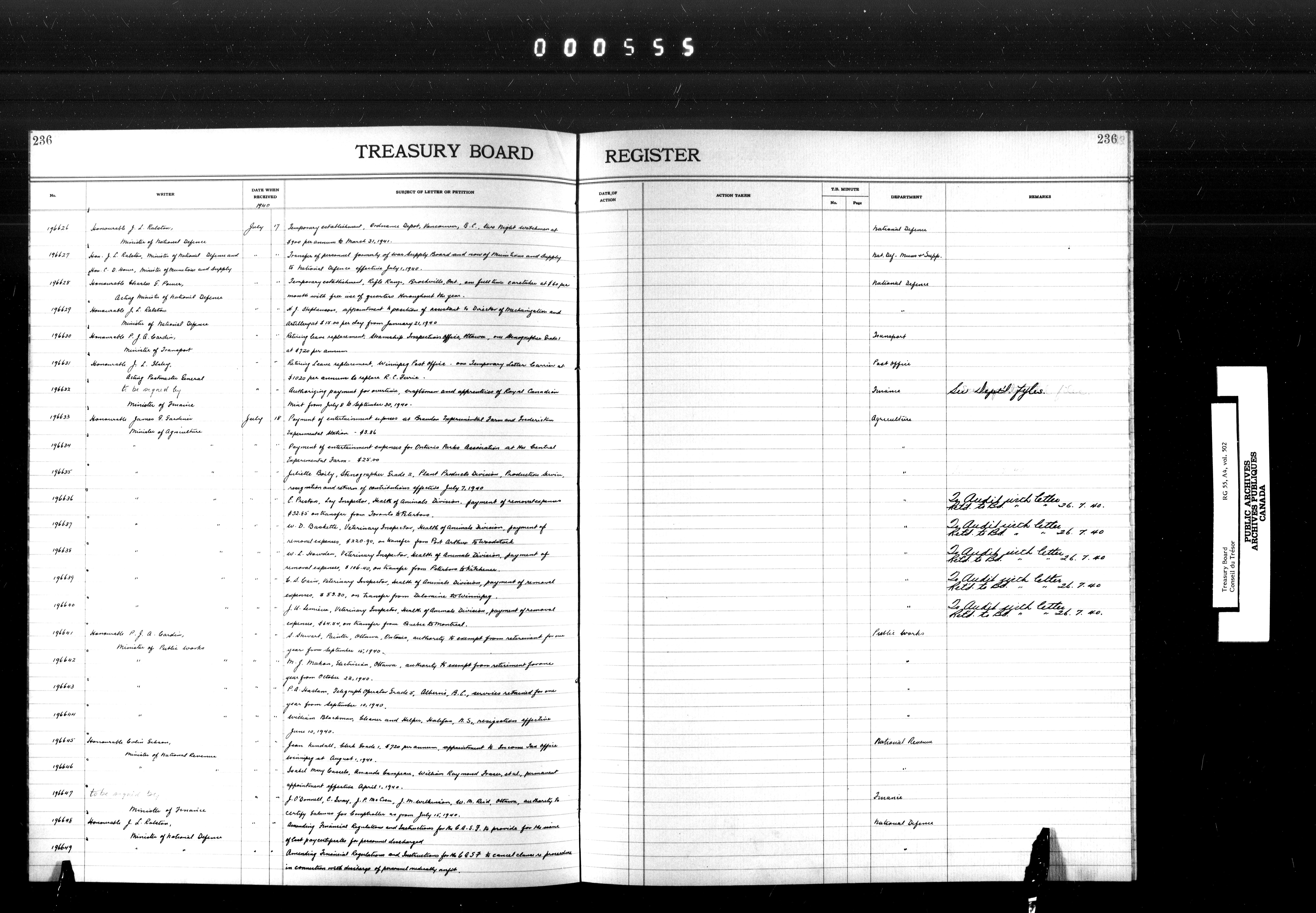 Treasury Board (Committee of the Privy Council) : indexes and registers, 1886-1995 - 7403