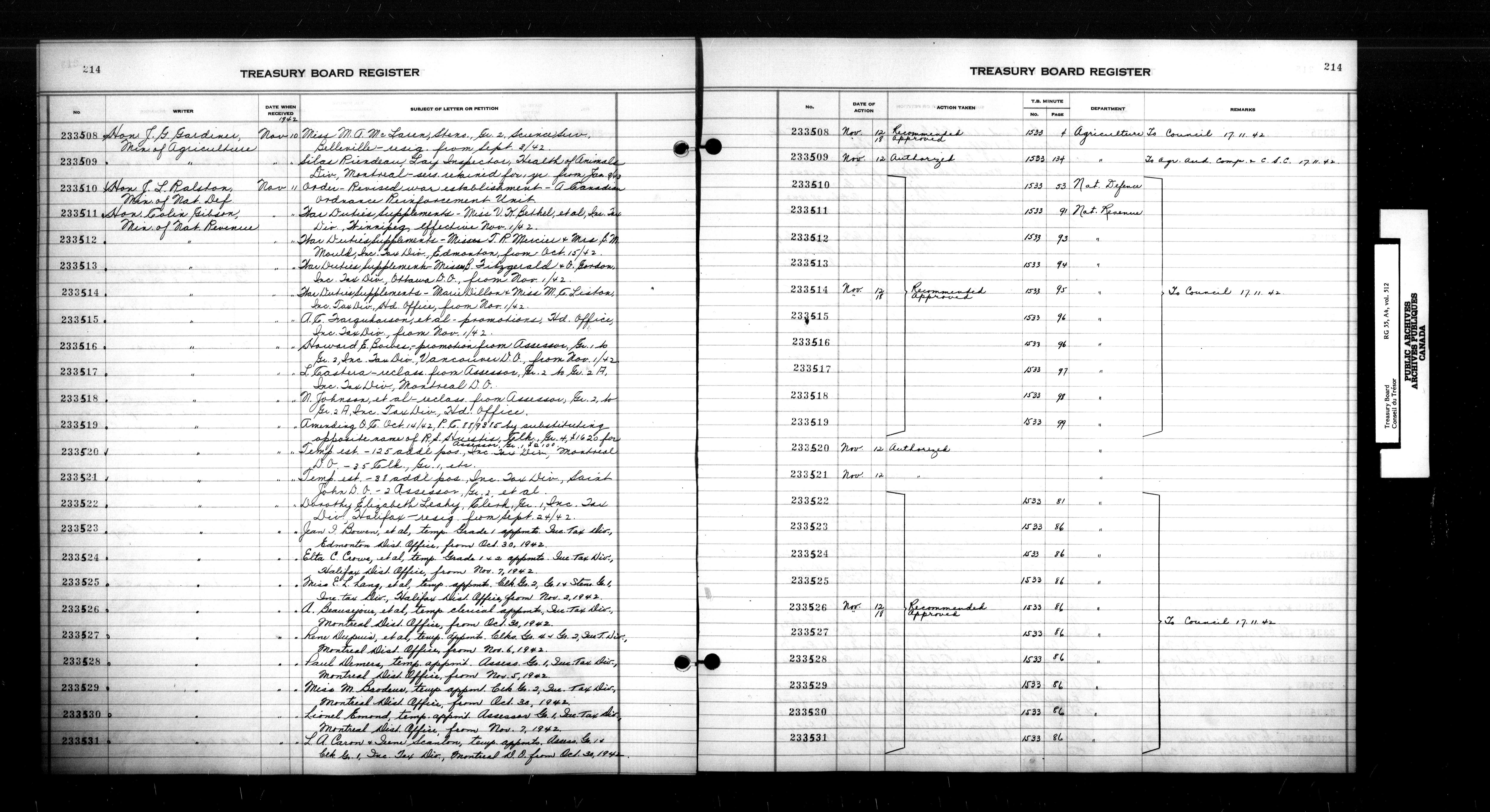 Treasury Board (Committee of the Privy Council) : indexes and registers, 1886-1995 - 7406