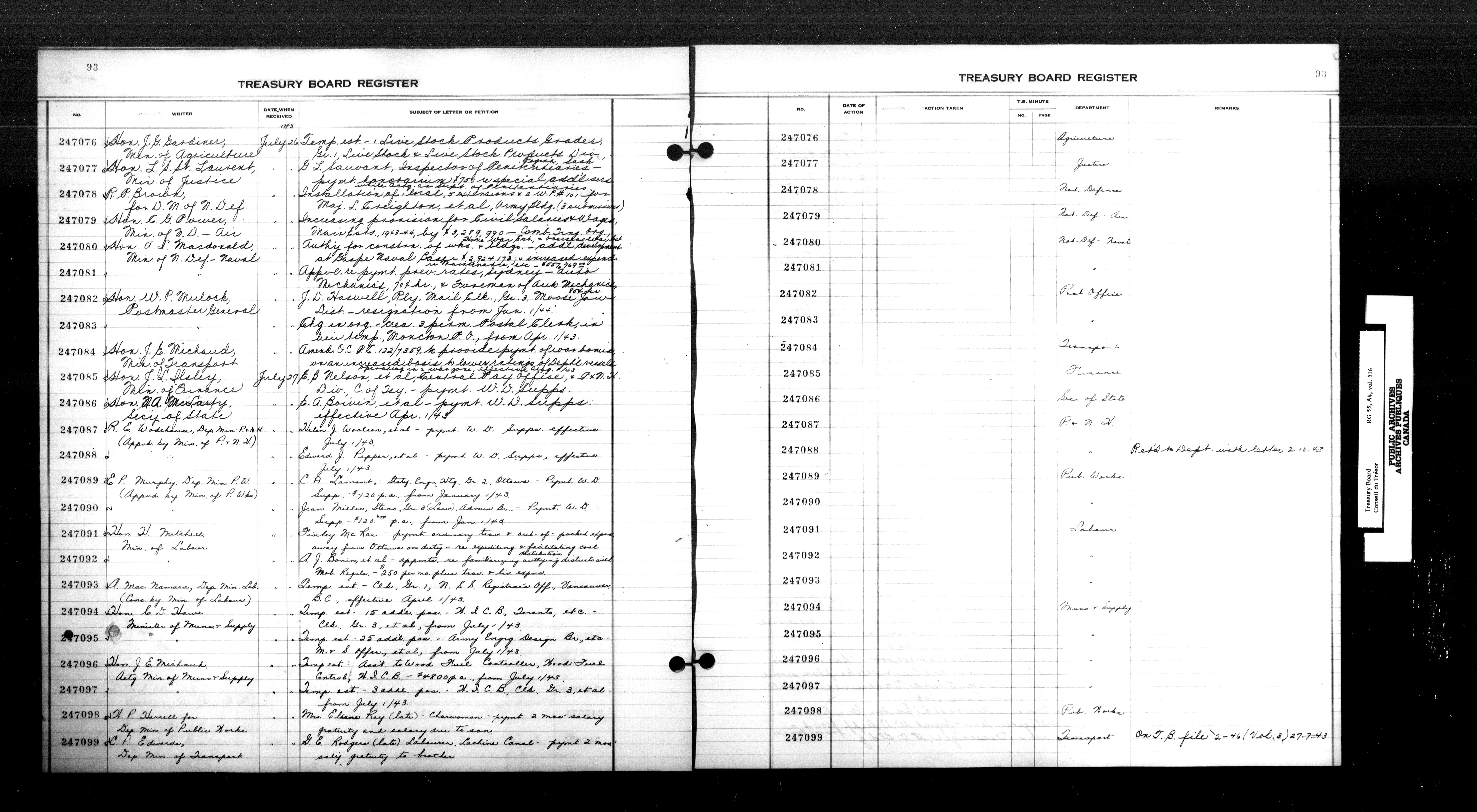 Treasury Board (Committee of the Privy Council) : indexes and registers, 1886-1995 - 7408