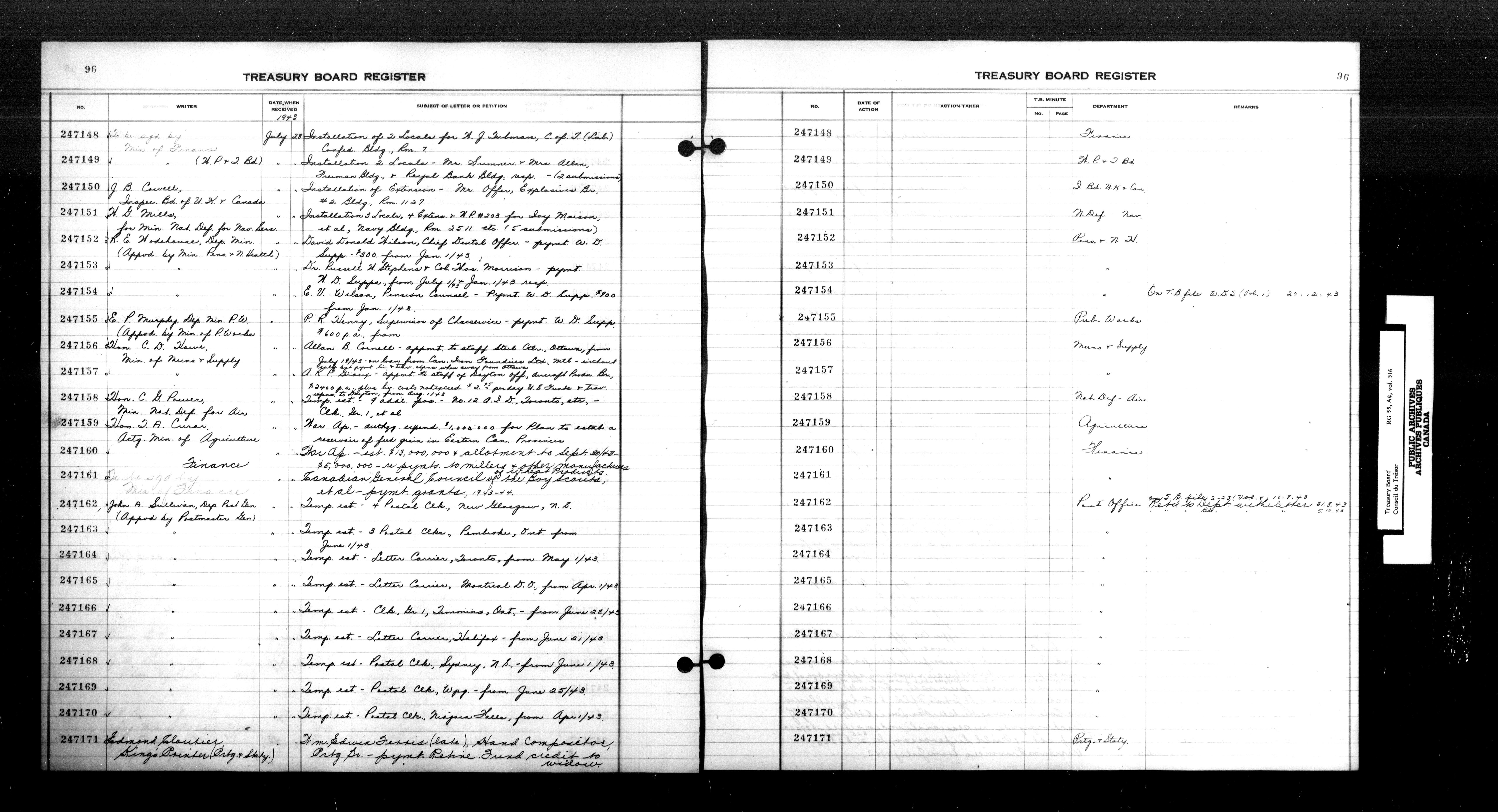Treasury Board (Committee of the Privy Council) : indexes and registers, 1886-1995 - 7408