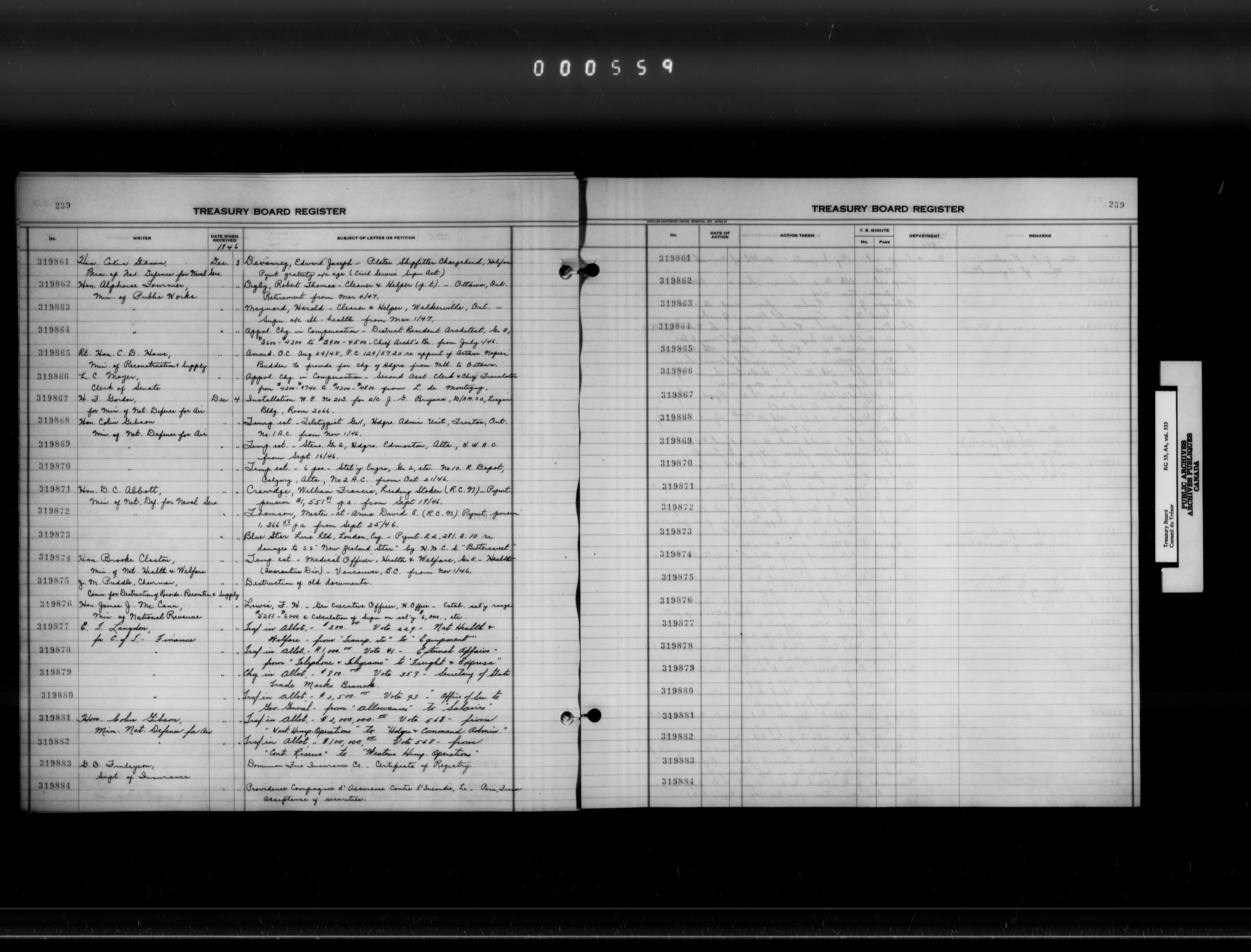 Treasury Board (Committee of the Privy Council) : indexes and registers, 1886-1995 - 7413