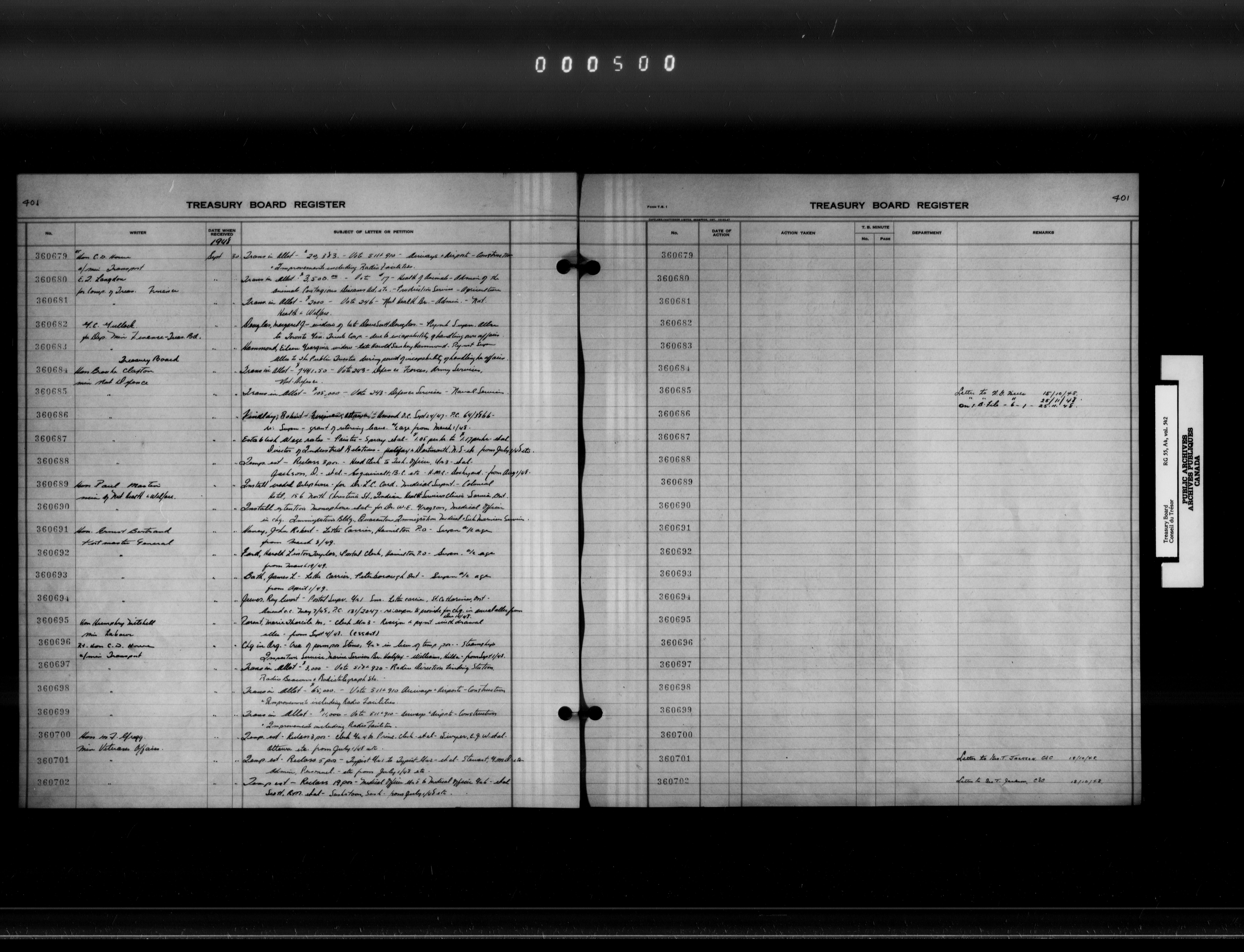 Treasury Board (Committee of the Privy Council) : indexes and registers, 1886-1995 - 7416