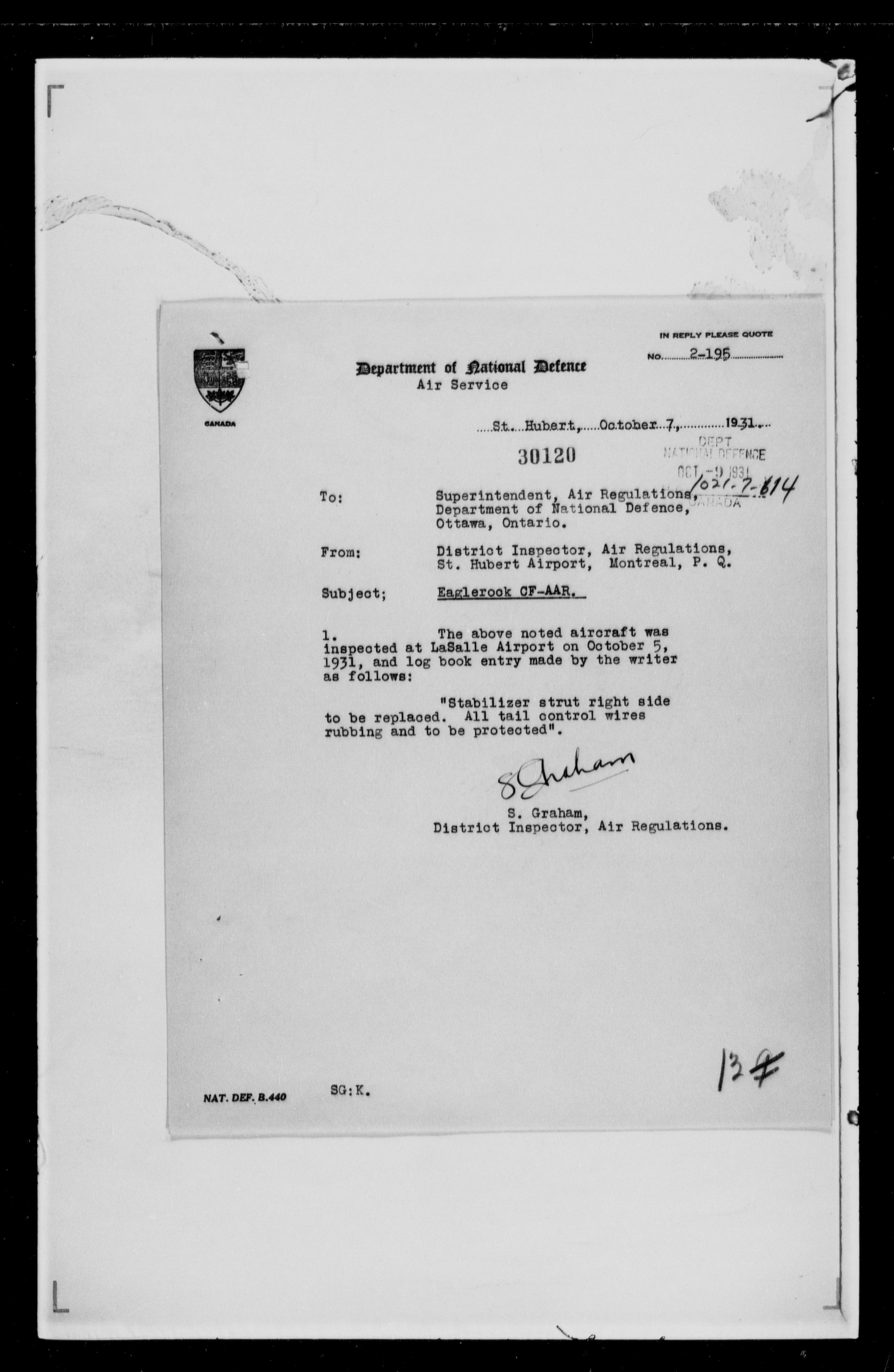 Department of Transport : Civil aircraft registration, inspection and operation files, block 5008, 1920-1986 - 7417