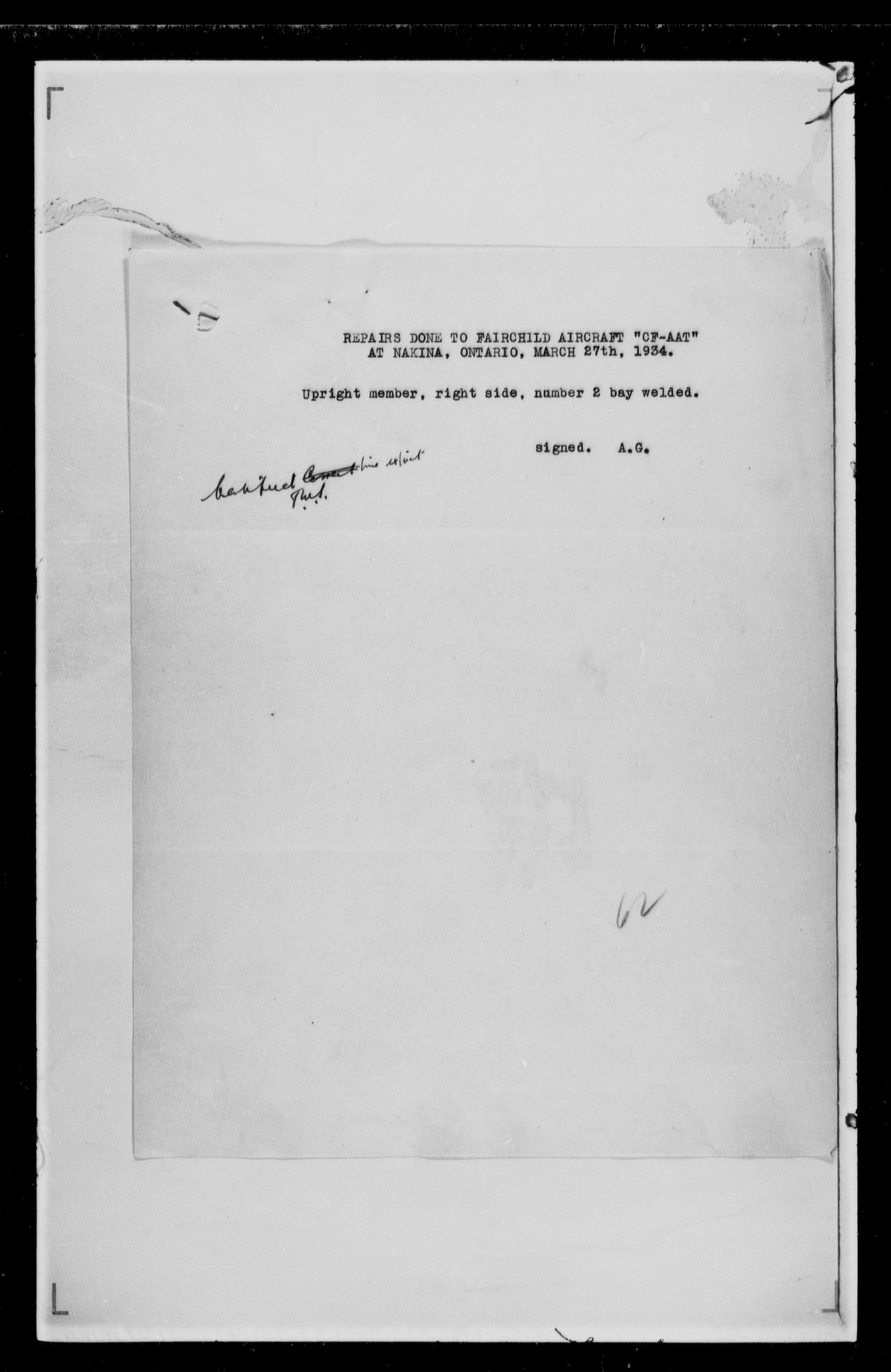 Department of Transport : Civil aircraft registration, inspection and operation files, block 5008, 1920-1986 - 7417