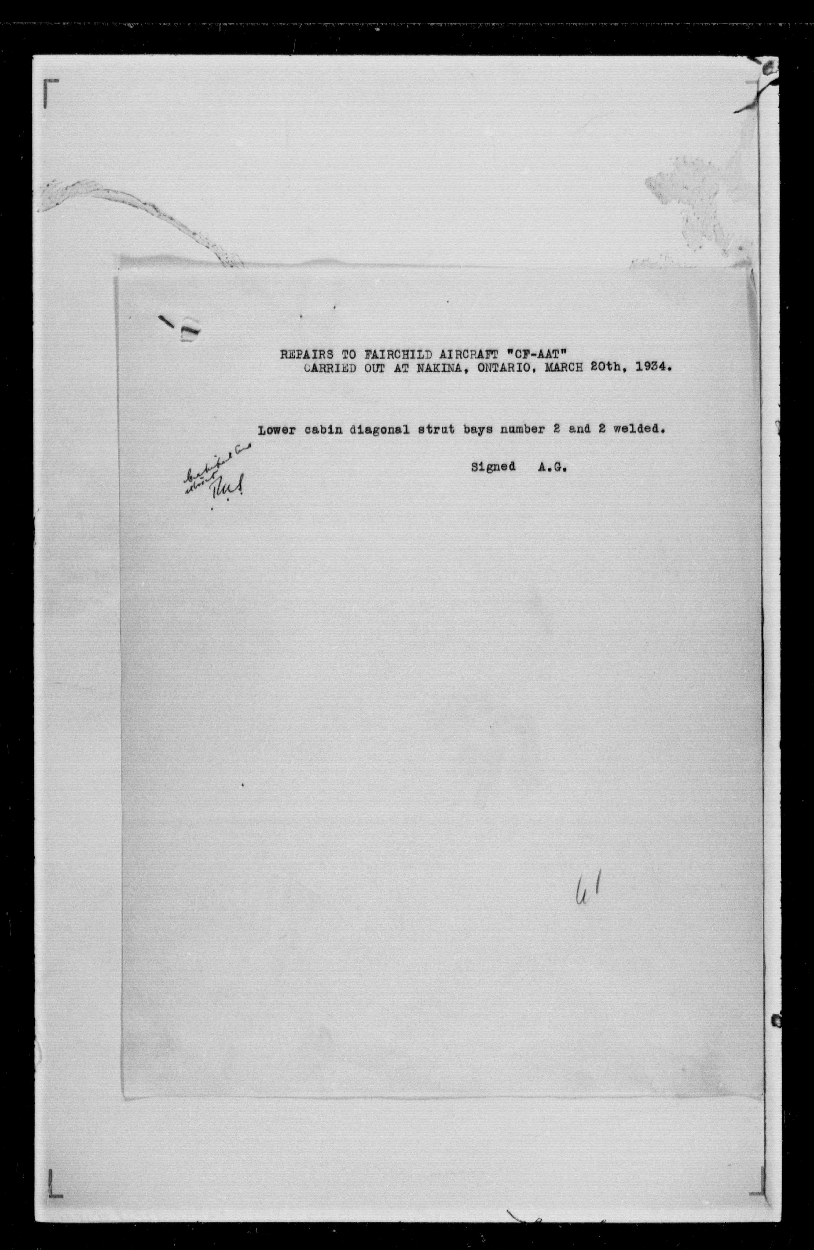 Department of Transport : Civil aircraft registration, inspection and operation files, block 5008, 1920-1986 - 7417