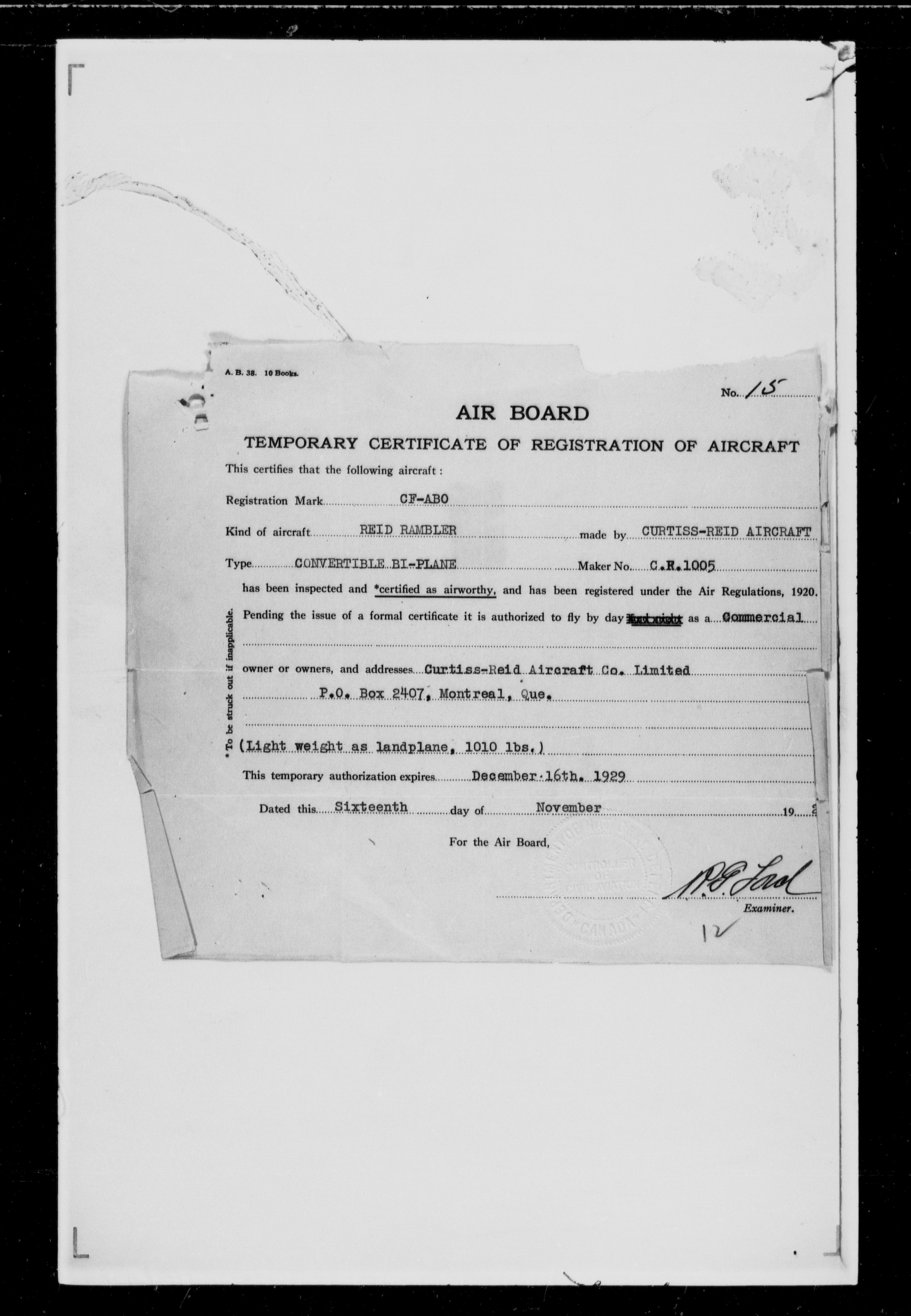 Department of Transport : Civil aircraft registration, inspection and operation files, block 5008, 1920-1986 - 7418