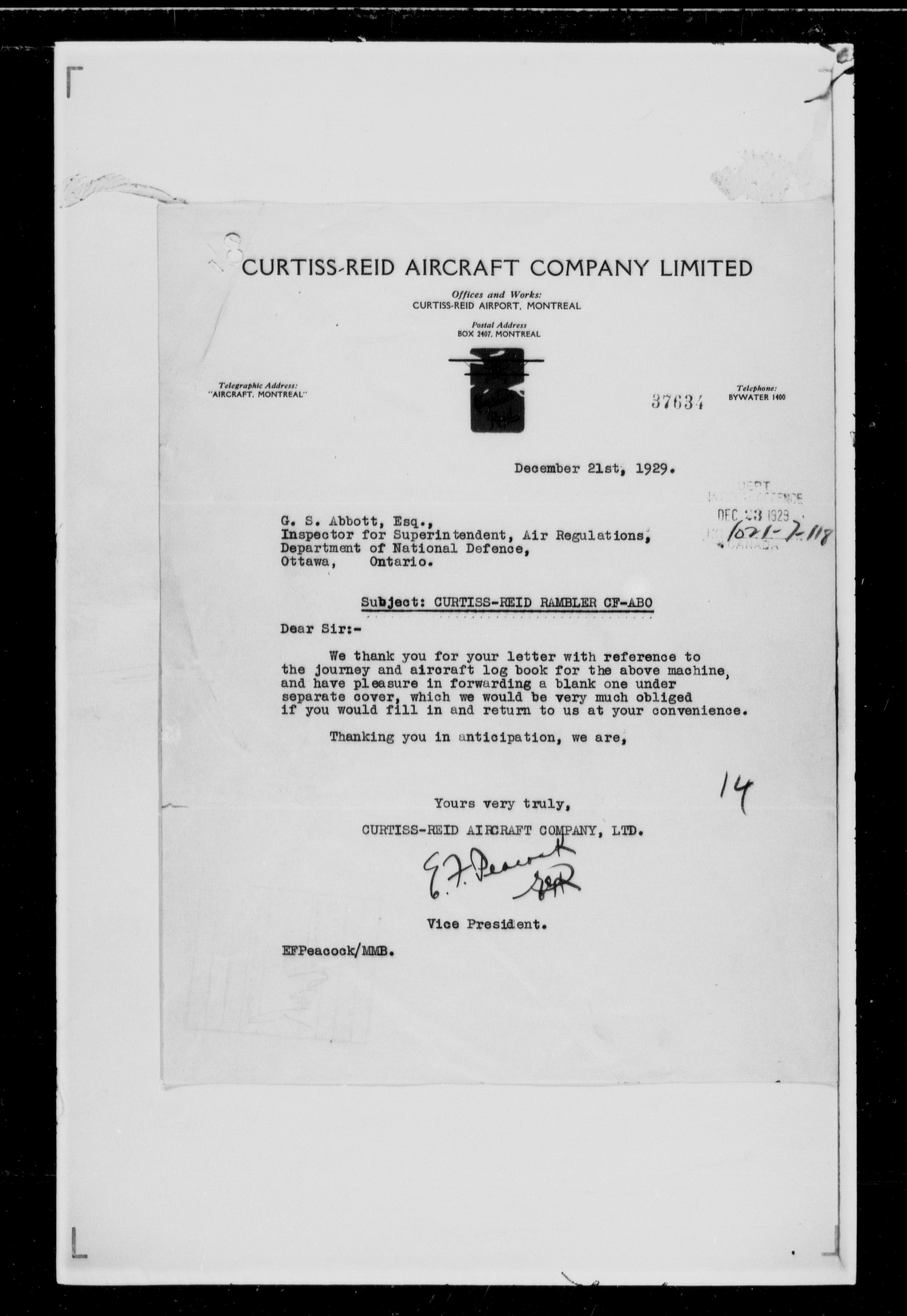 Department of Transport : Civil aircraft registration, inspection and operation files, block 5008, 1920-1986 - 7418
