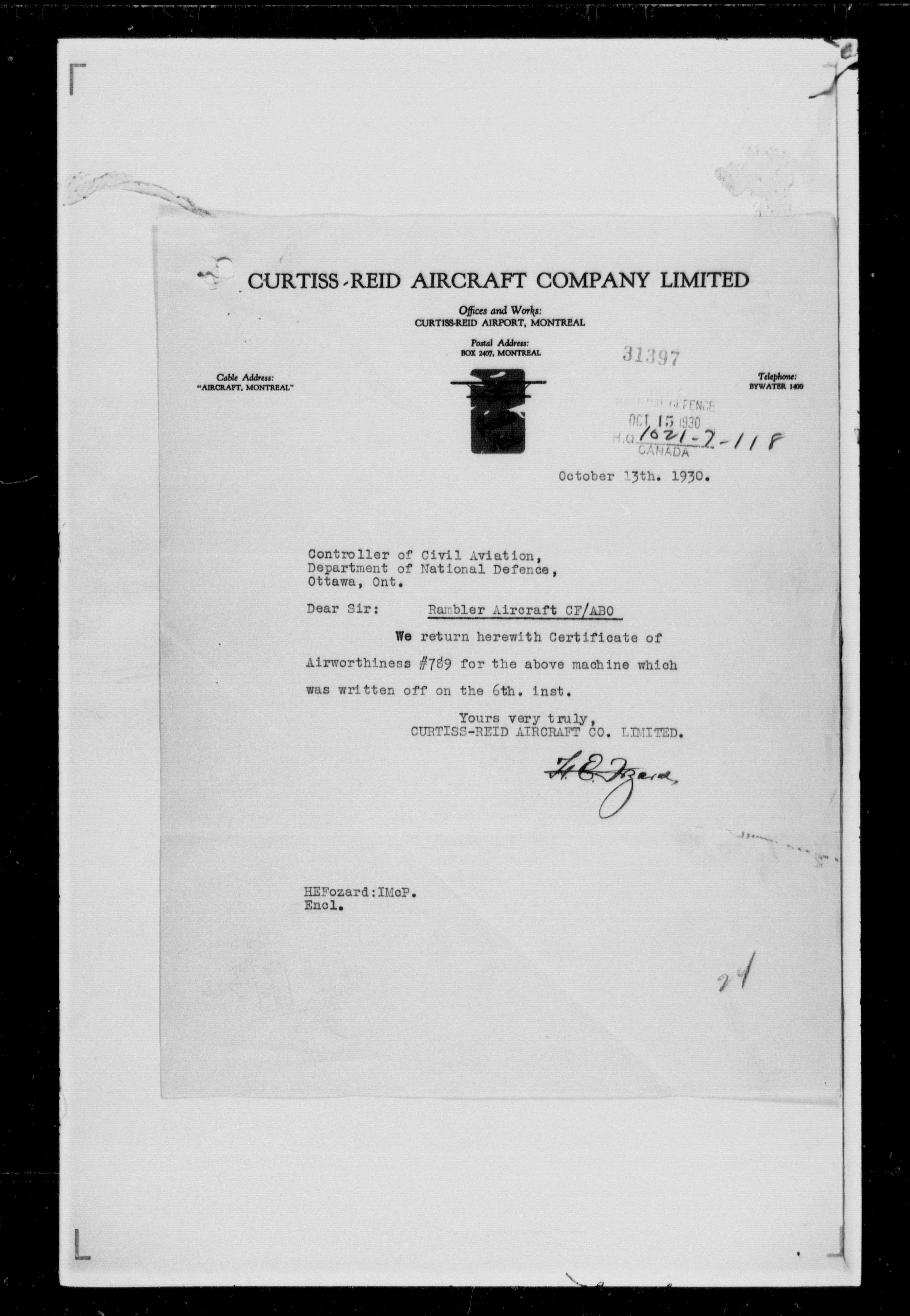 Department of Transport : Civil aircraft registration, inspection and operation files, block 5008, 1920-1986 - 7418