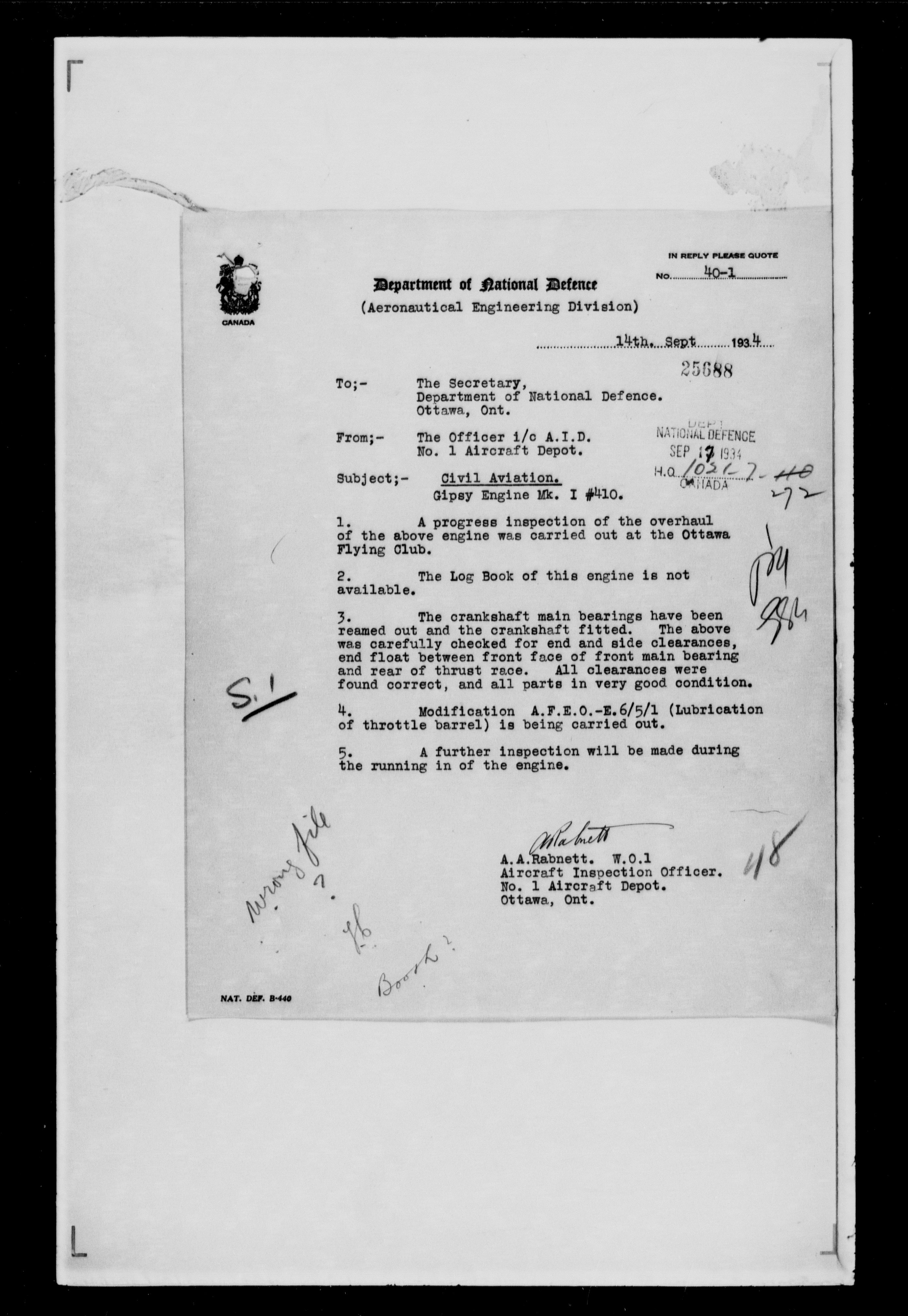 Department of Transport : Civil aircraft registration, inspection and operation files, block 5008, 1920-1986 - 7421