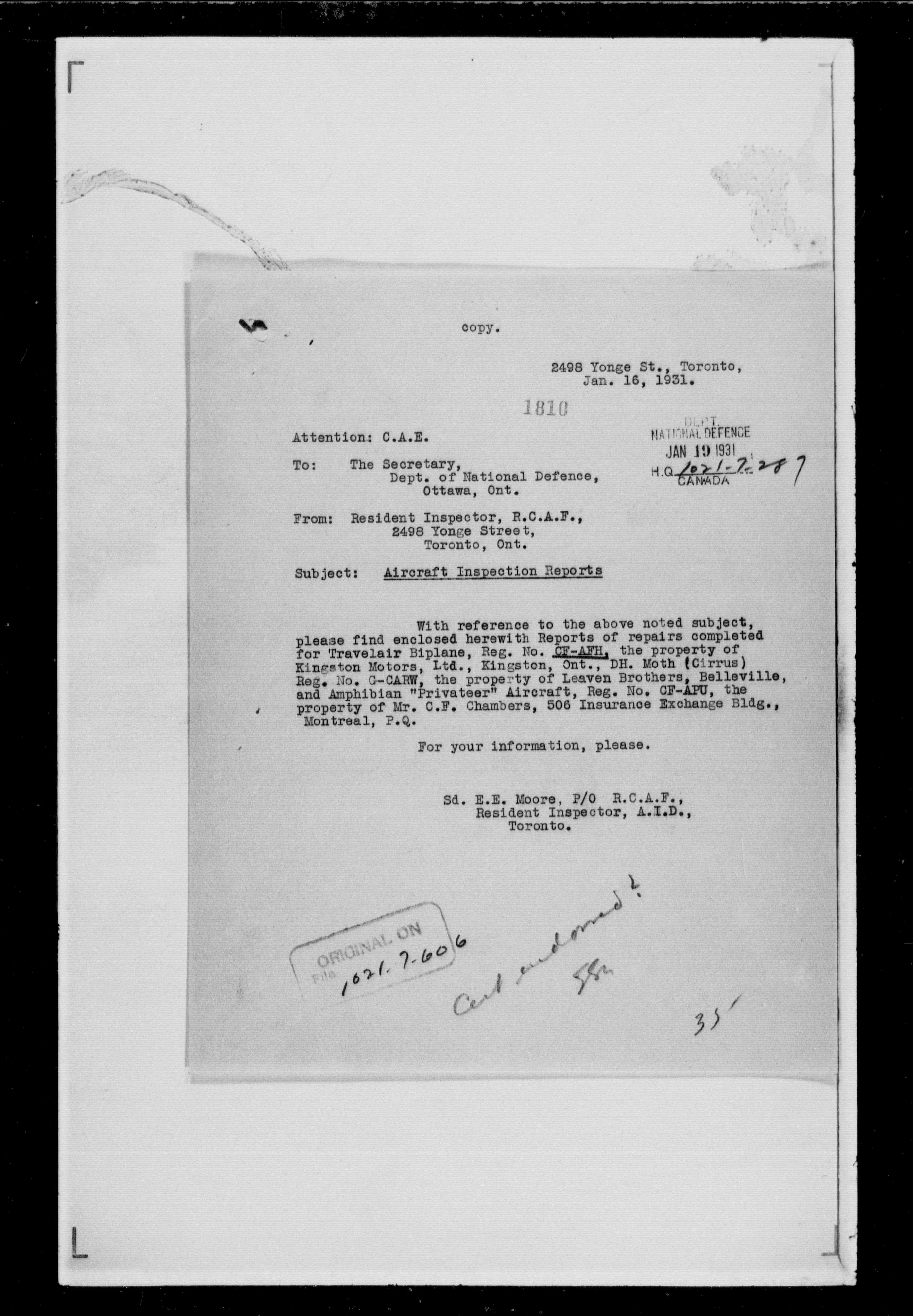 Department of Transport : Civil aircraft registration, inspection and operation files, block 5008, 1920-1986 - 7423